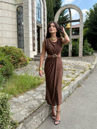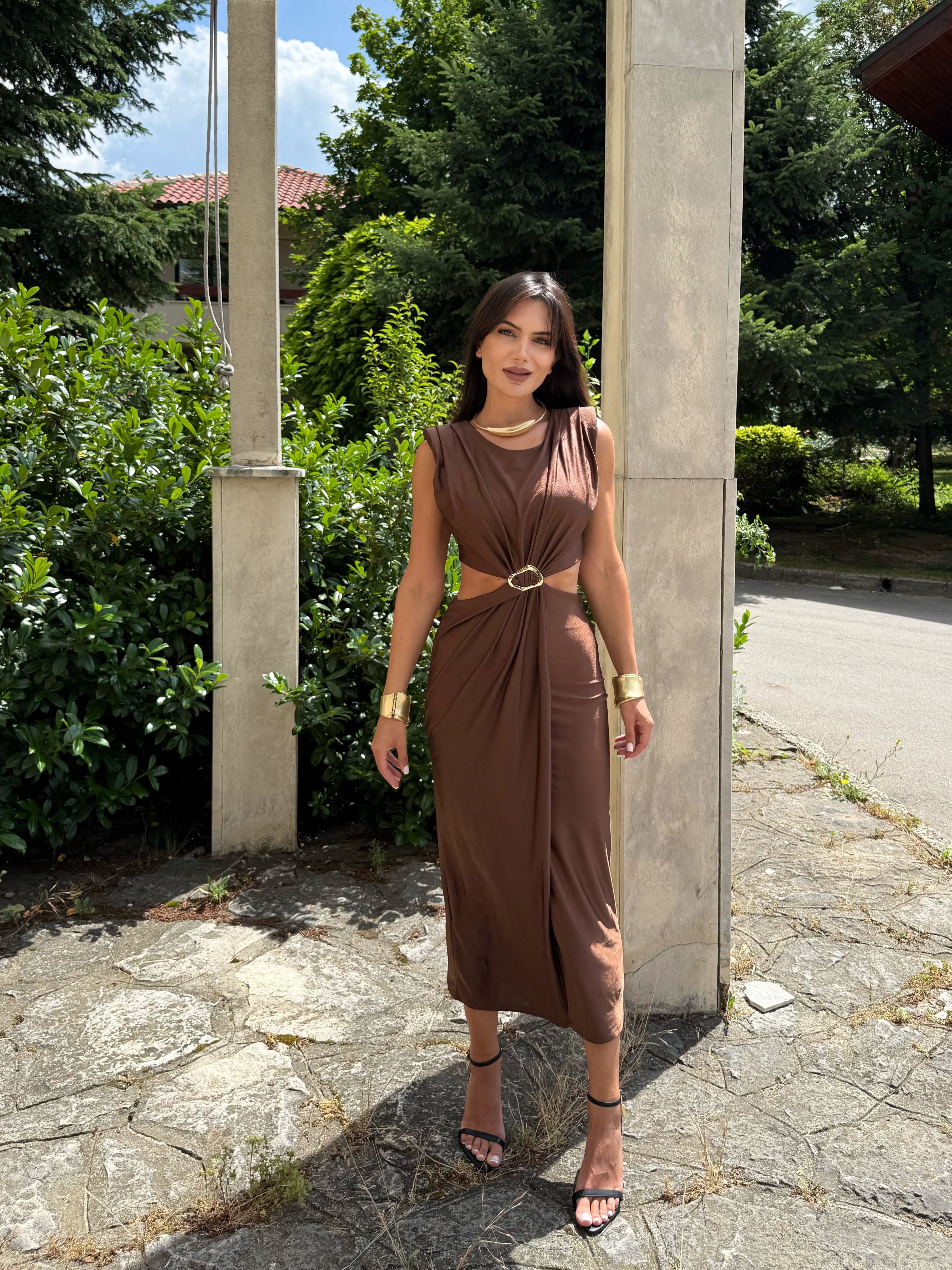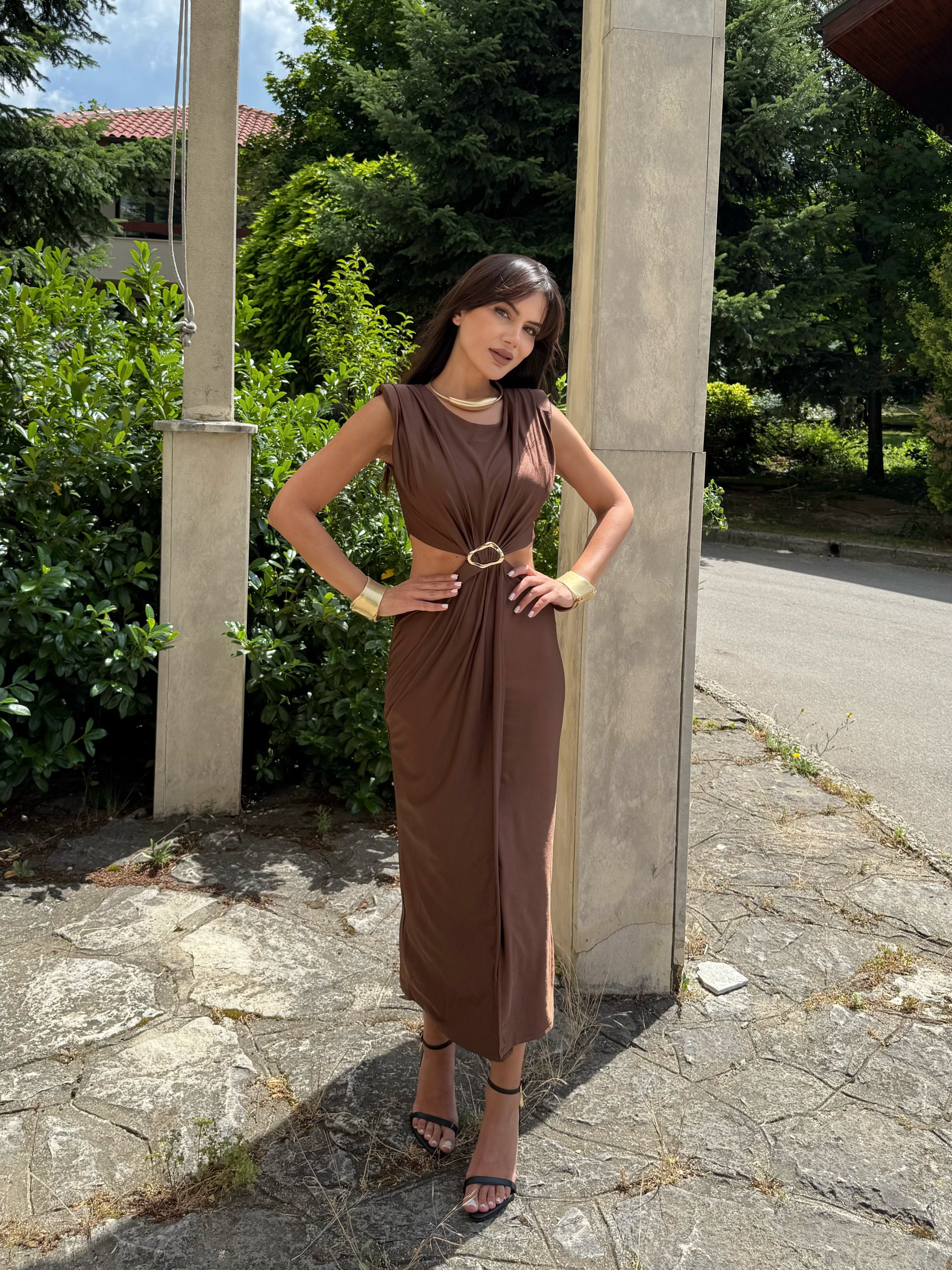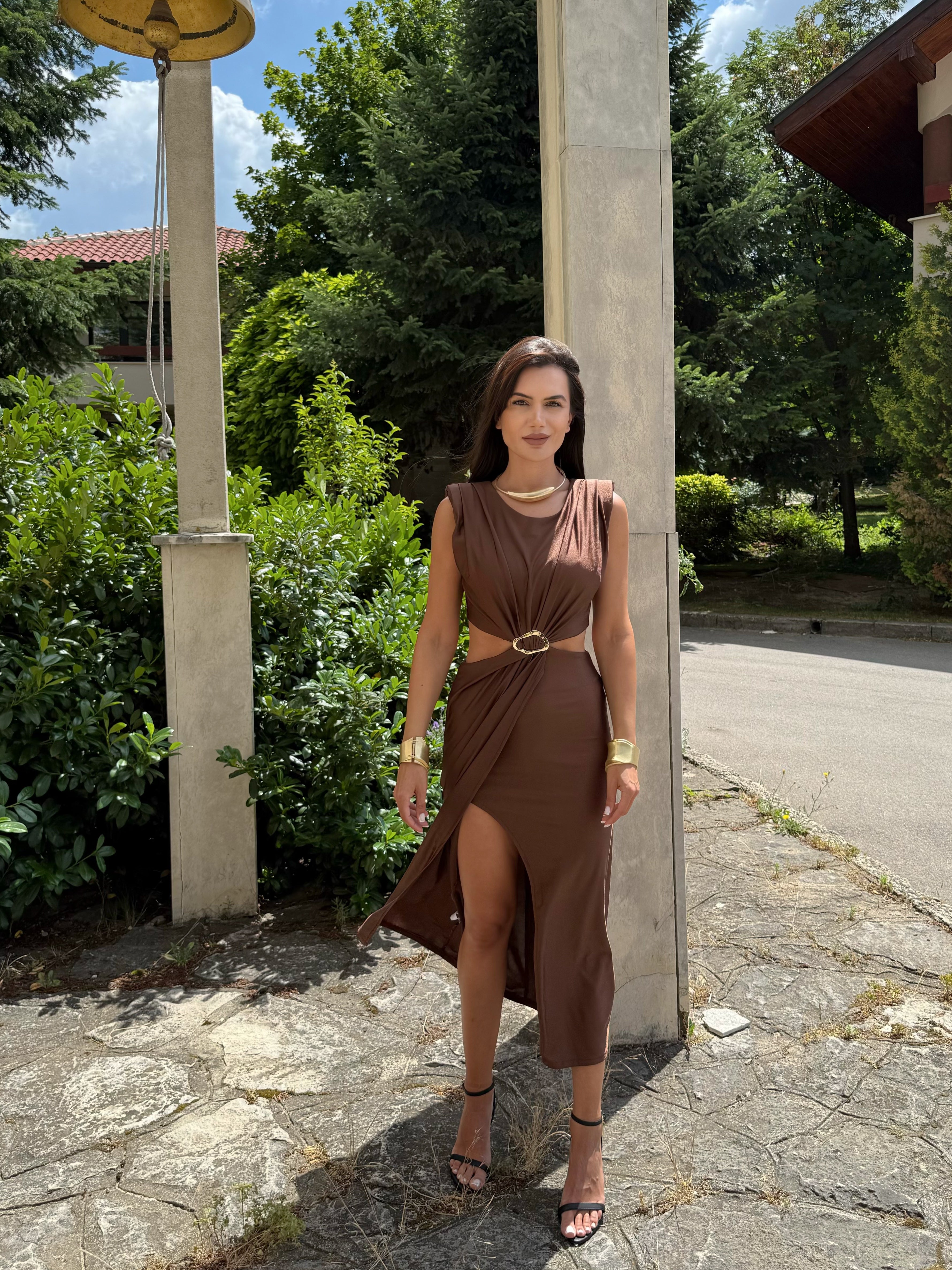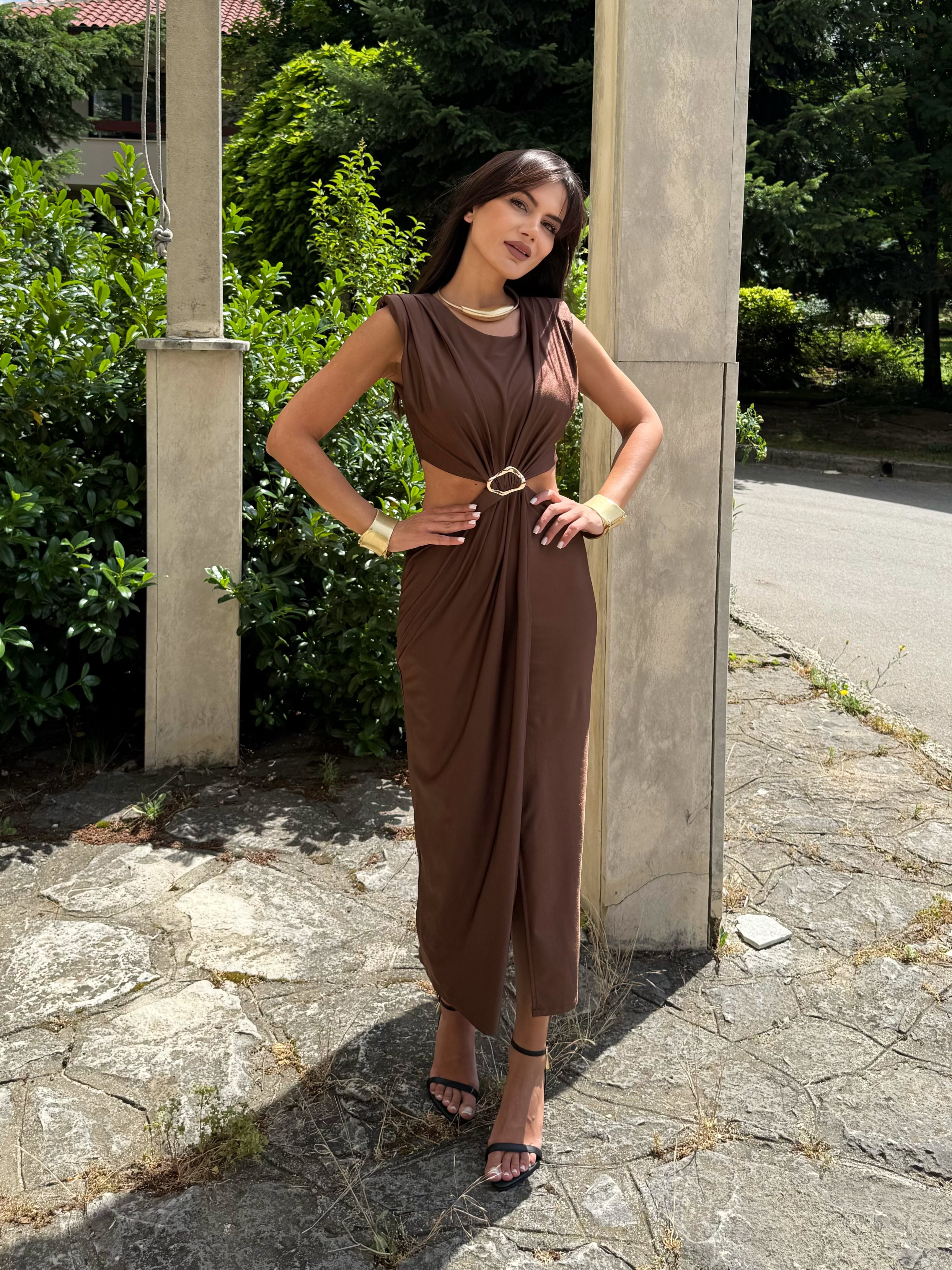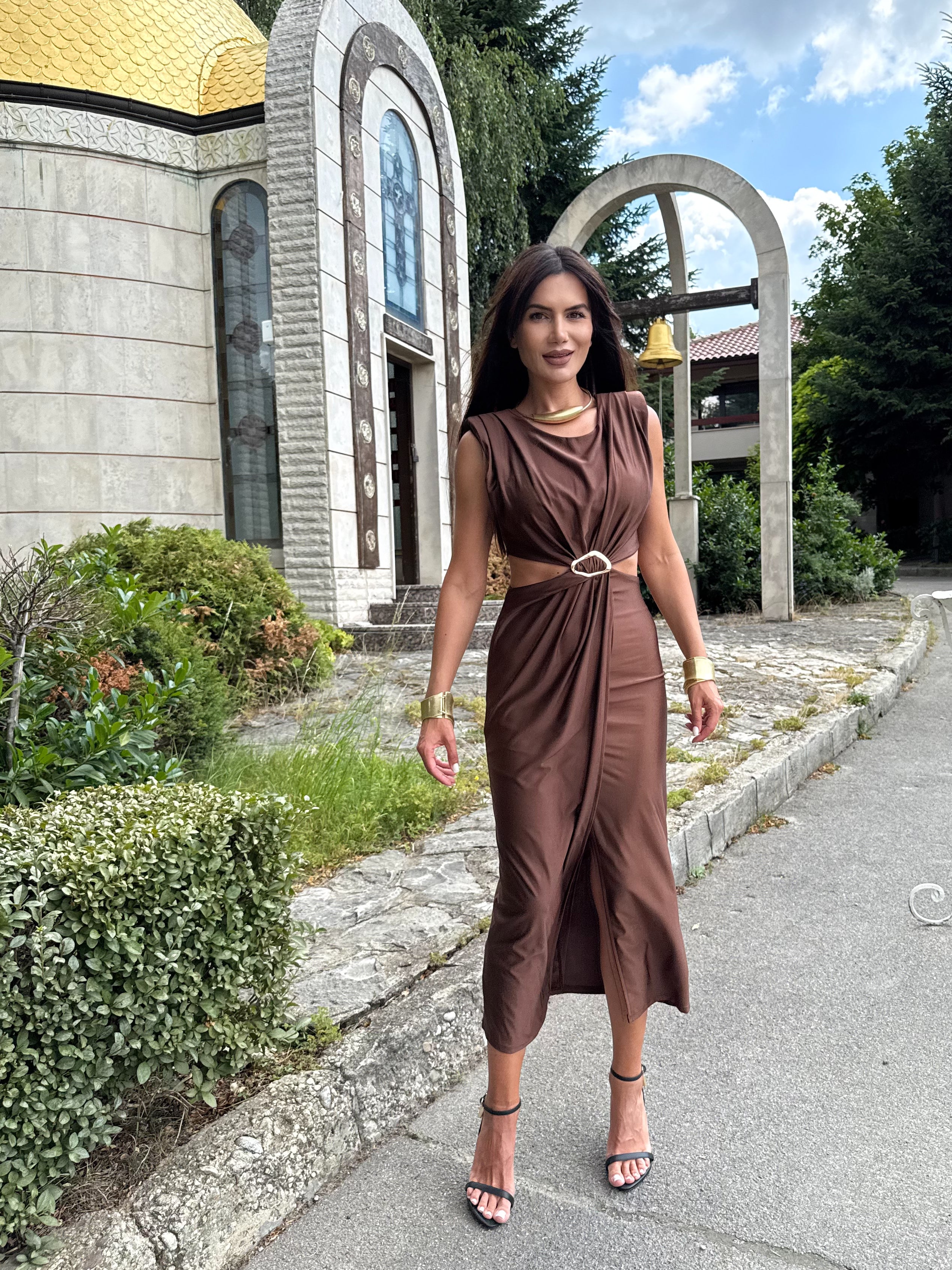Rochia KIM GOLD este combinația perfectă între eleganță și minimalism. Este confecționată dintr-un material fin, elastic, care accentuează feminitatea și creează un ușor efect de drapaj. Detaliul auriu din talie conferă un aspect luxos și accentuează silueta. O alegere ideală pentru ocazii speciale, evenimente de seară sau ieșiri elegante în timpul zilei.