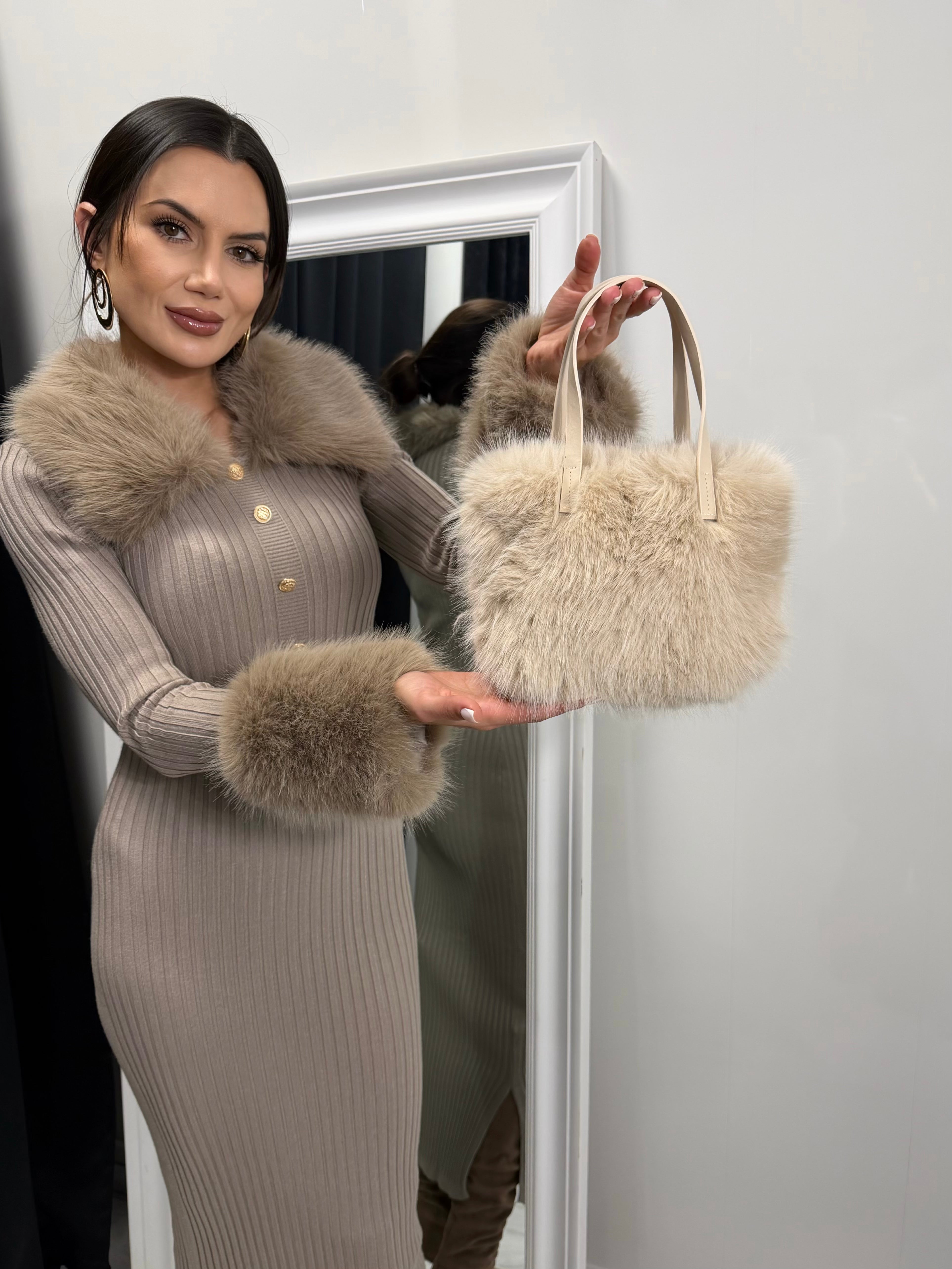 GEANTĂ MINI DIN BLANĂ BEJ – Geantă mică pufoasă