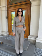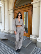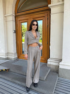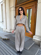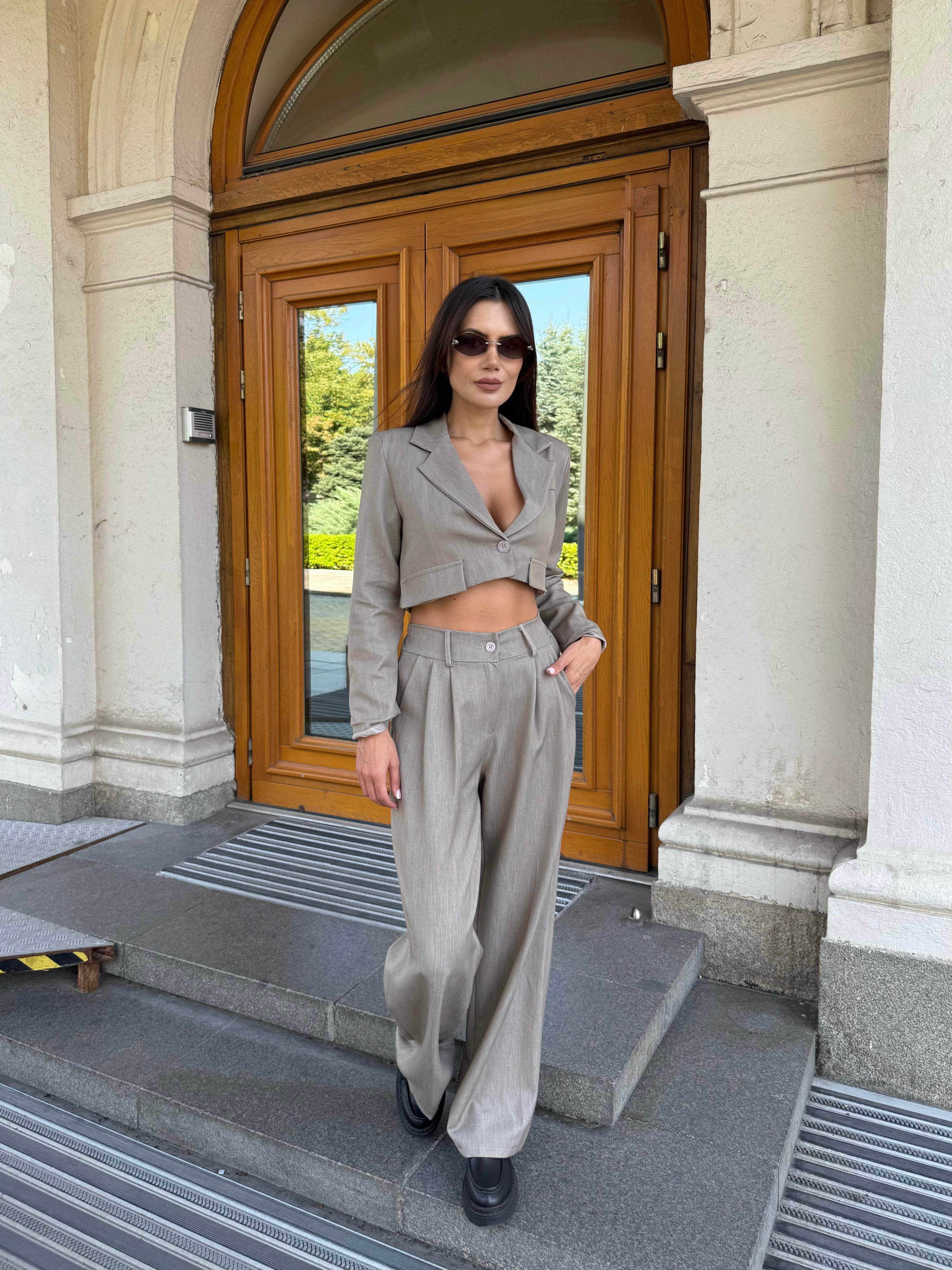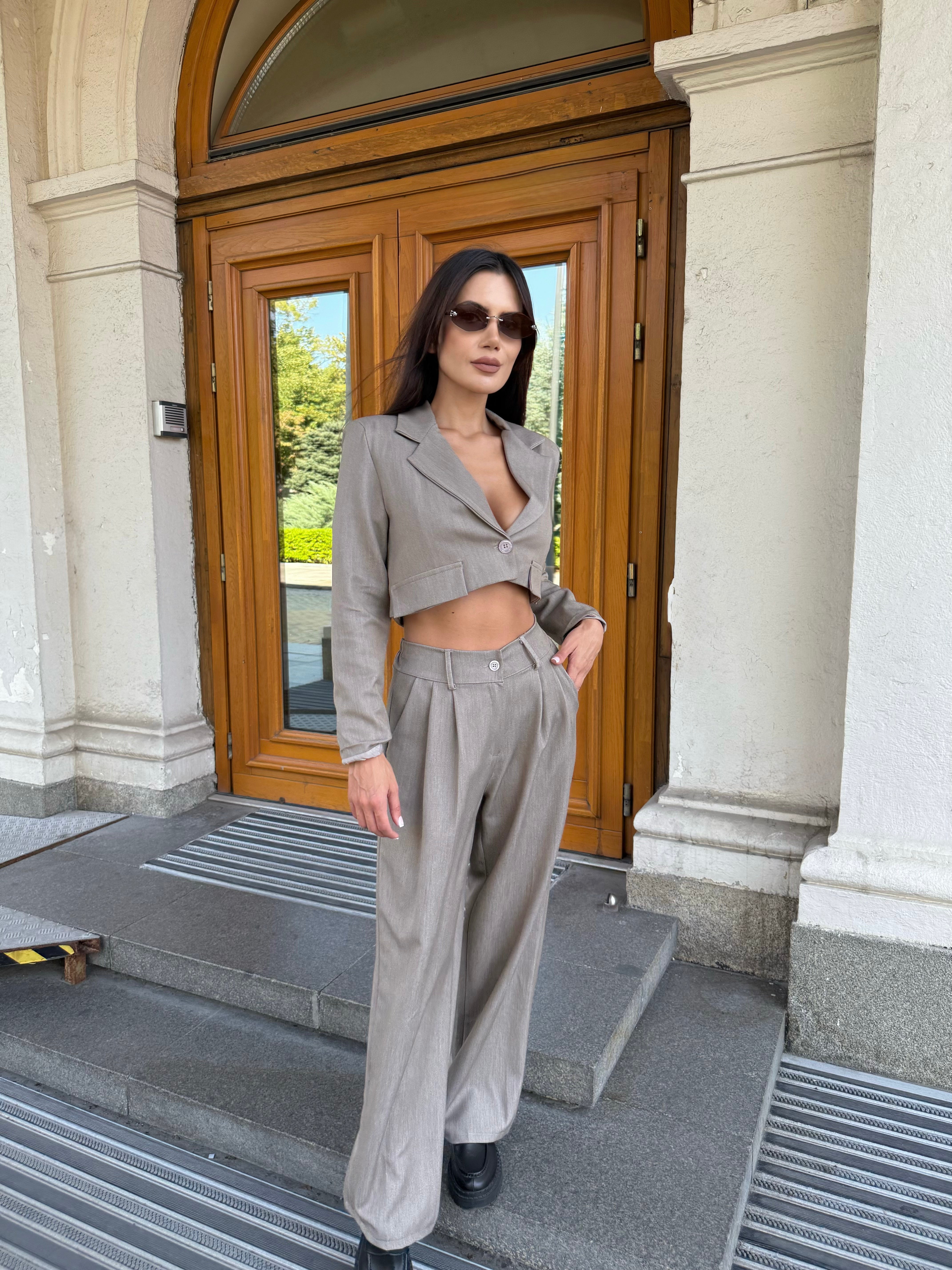 City Crop Suit Beige – un costum care combină confortul și eleganța într-o siluetă modernă.