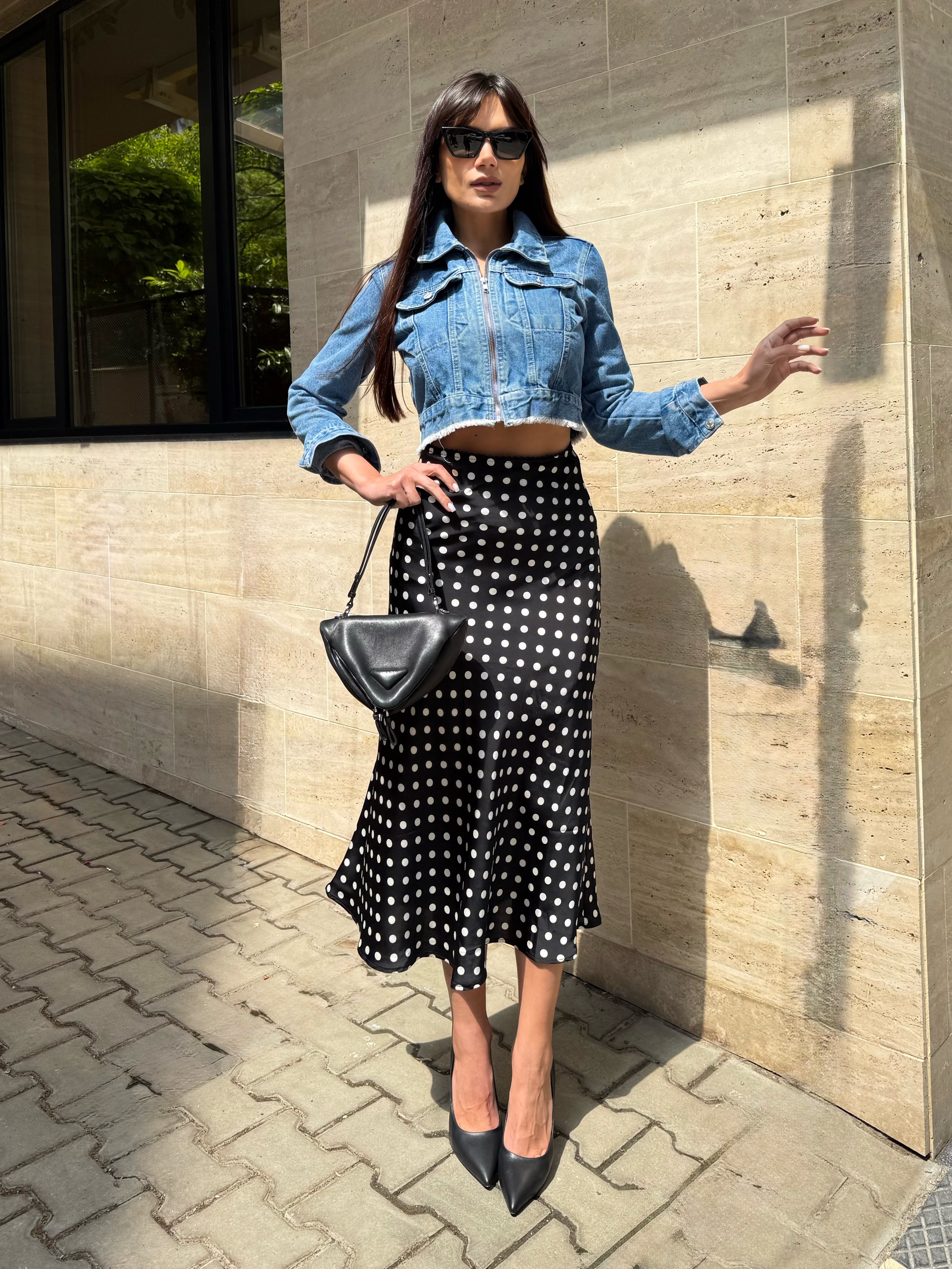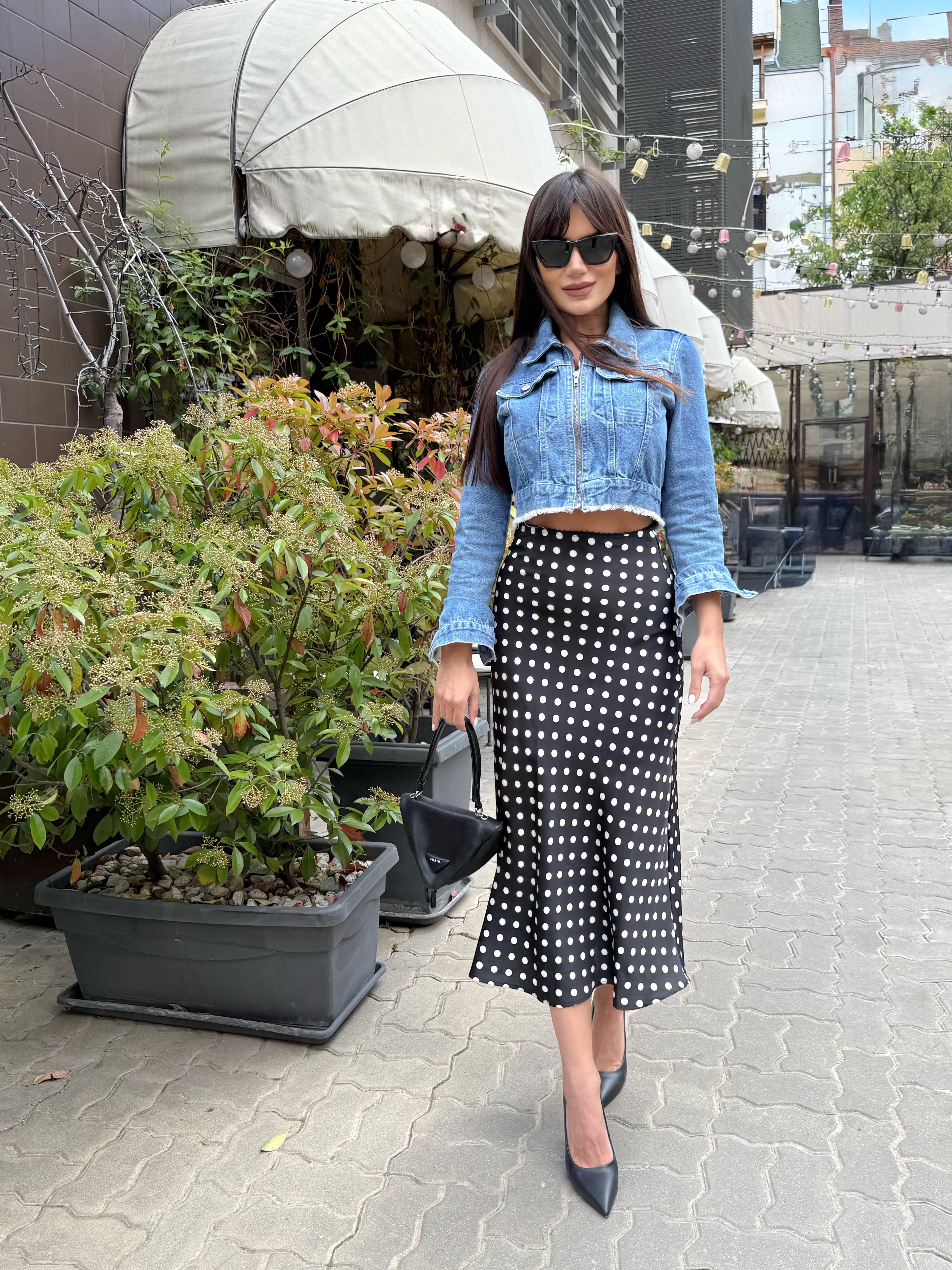 „Dolce Dots” este fusta care combină farmecul jucăuș cu eleganța casual. Cu un model clasic cu buline și o croială lejeră, acest model este perfect pentru o atmosferă de primăvară-vară cu inspirație retro. Fie că alegi versiunea neagră sau albă - look-ul tău va fi elegant și memorabil.