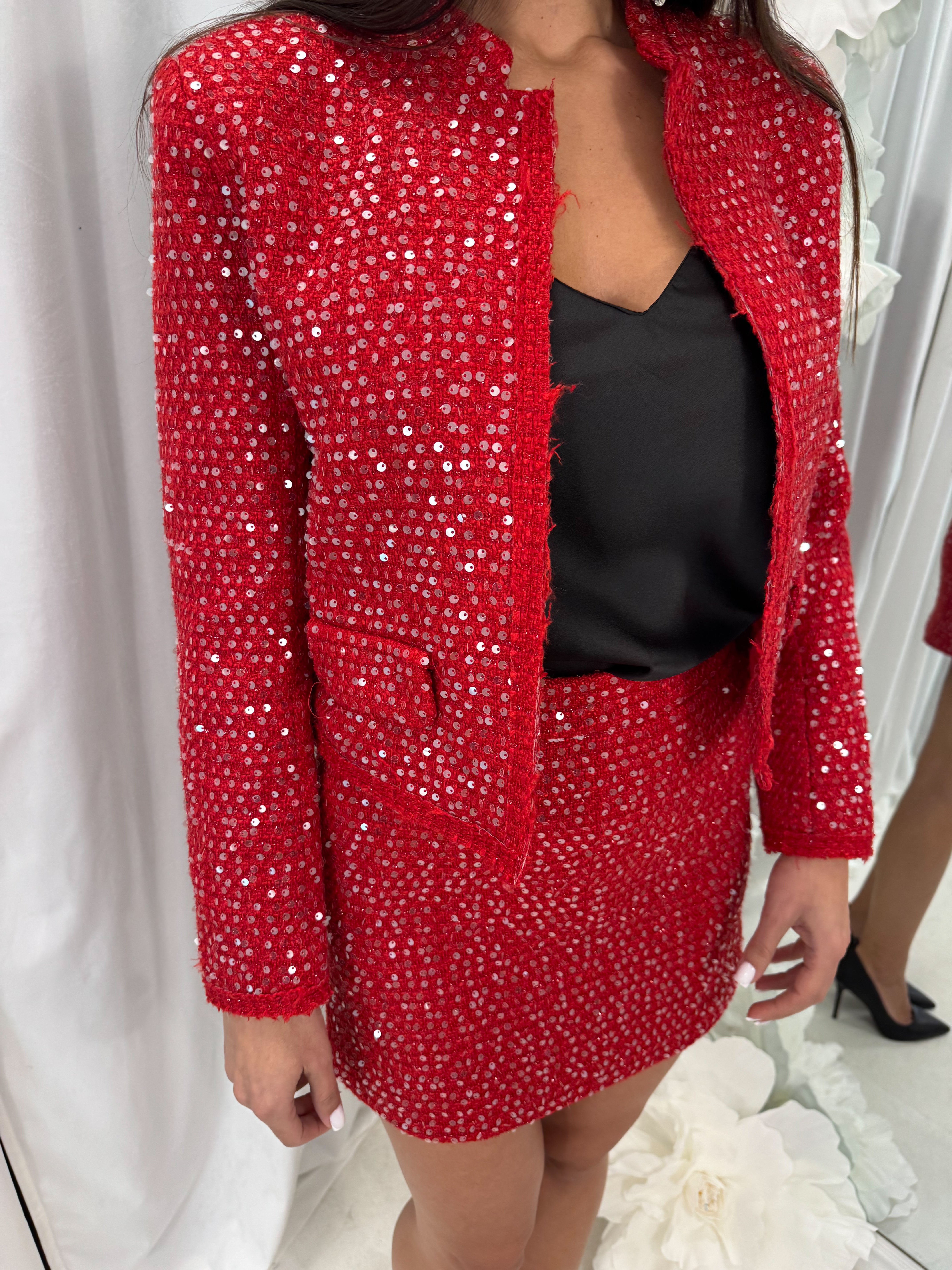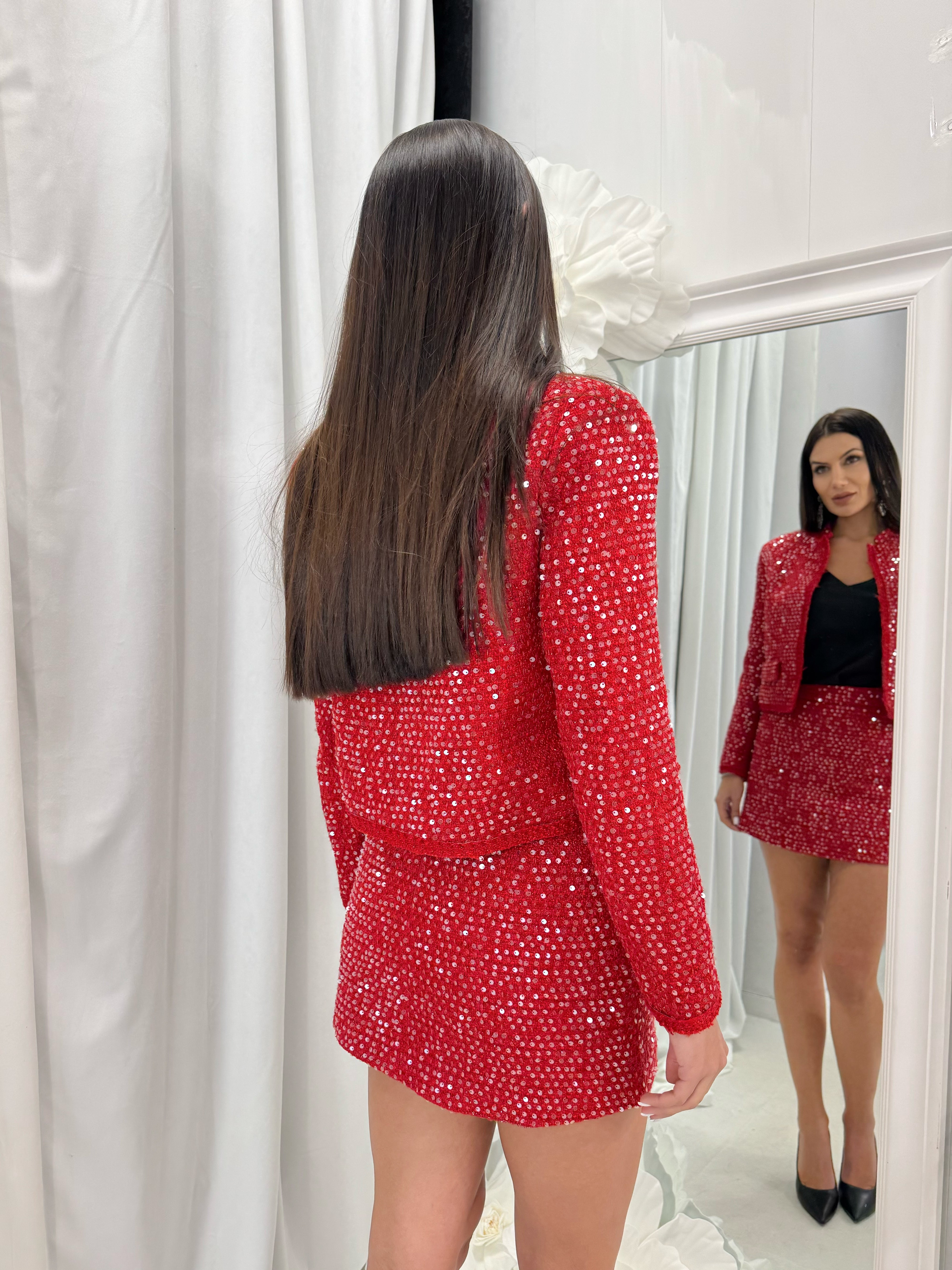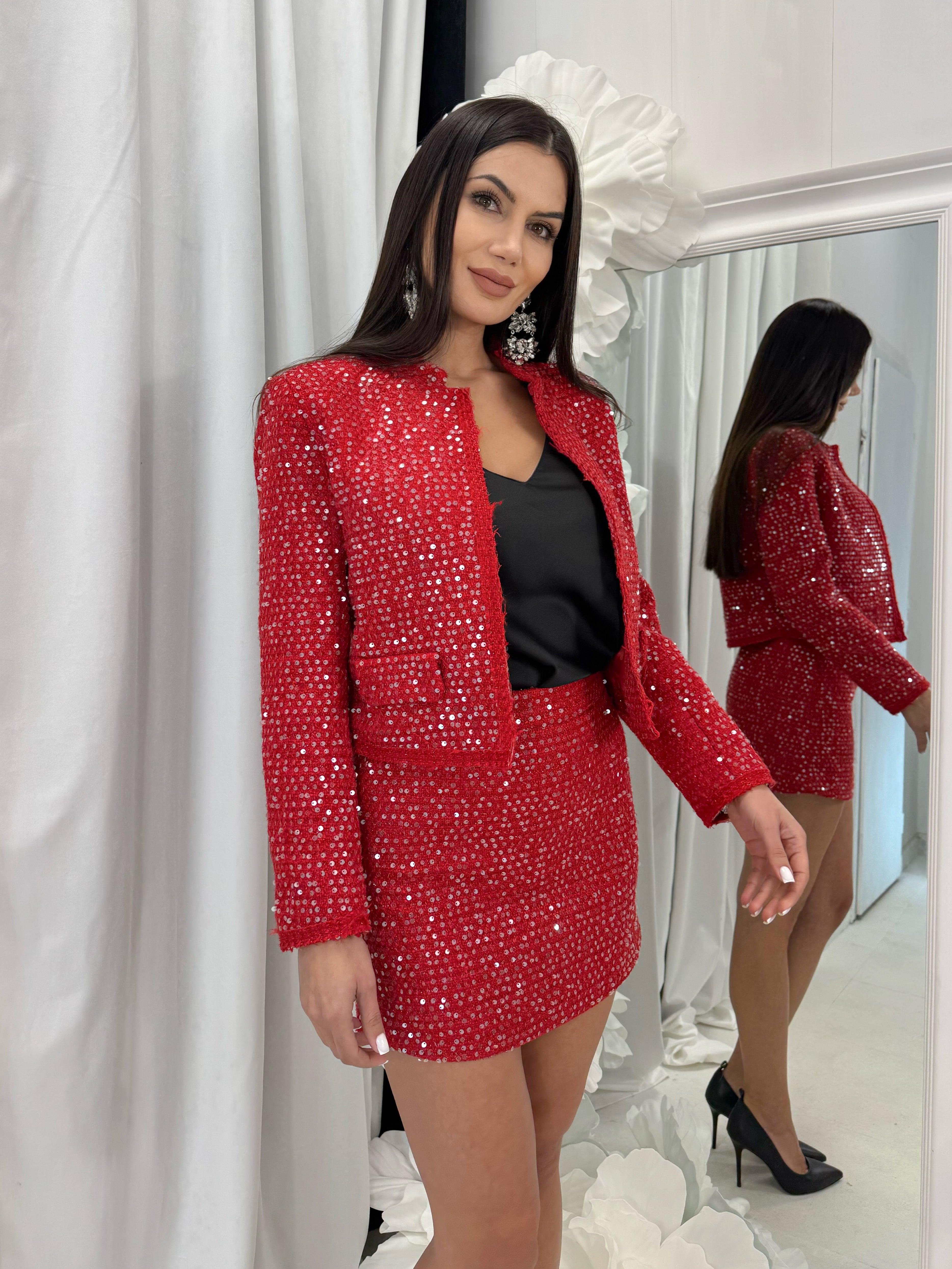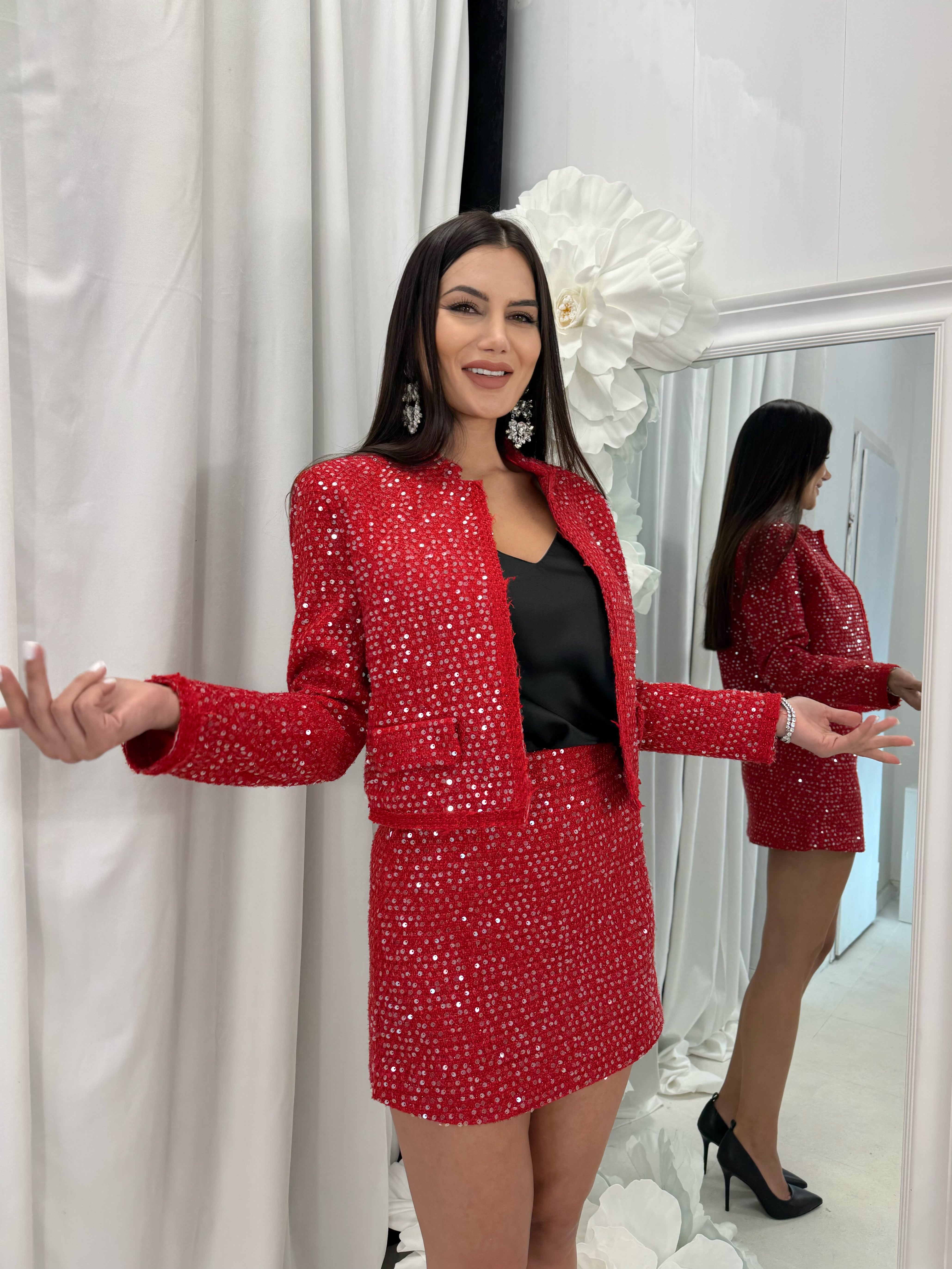 COSTUM | JACĂ și FUSTĂ cu paiete strălucitoare spectaculoase.