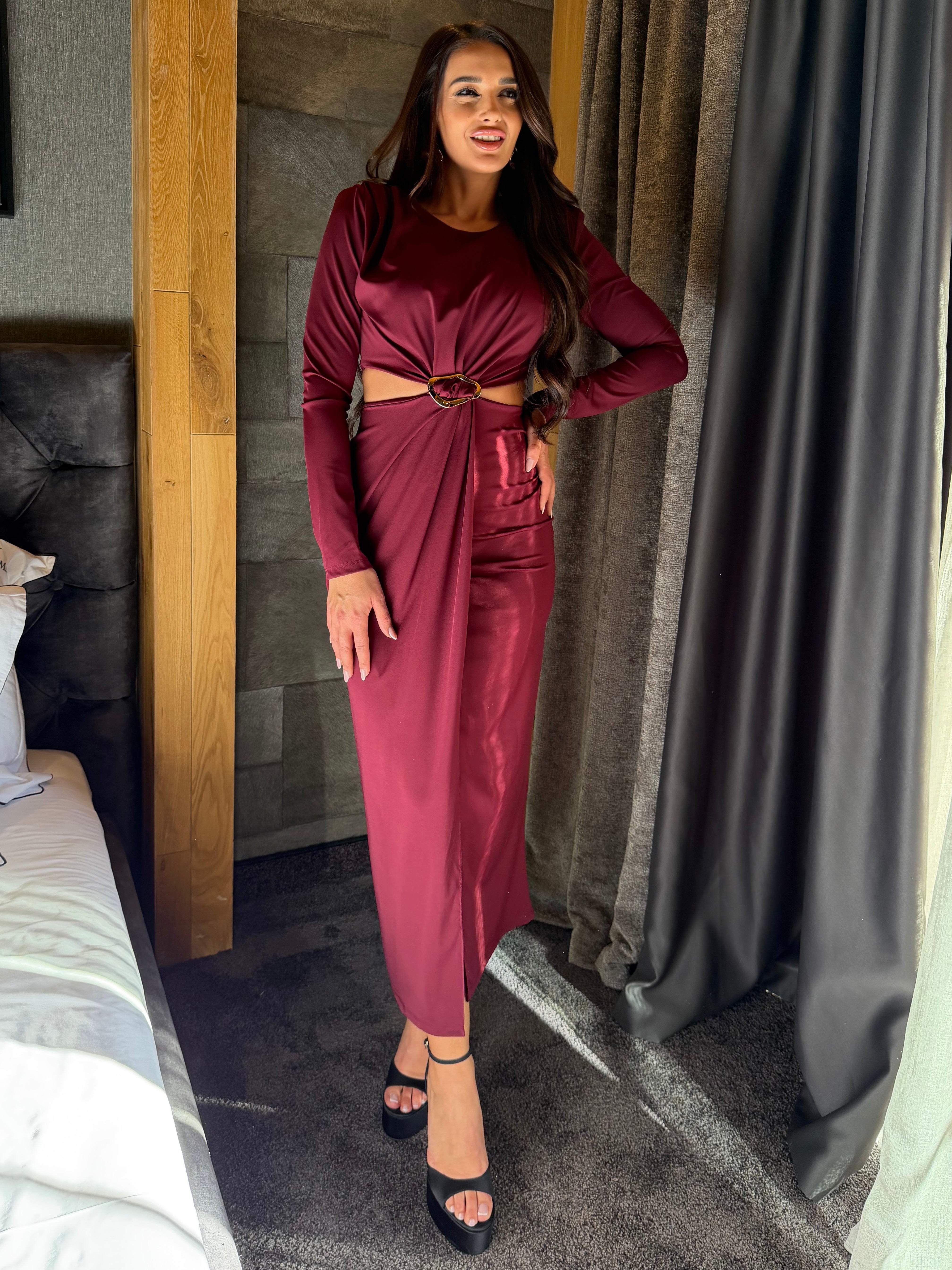 Confecționată dintr-un material moale și elastic, se așează perfect pe corp, accentuând formele și creând o siluetă drapată spectaculoasă.