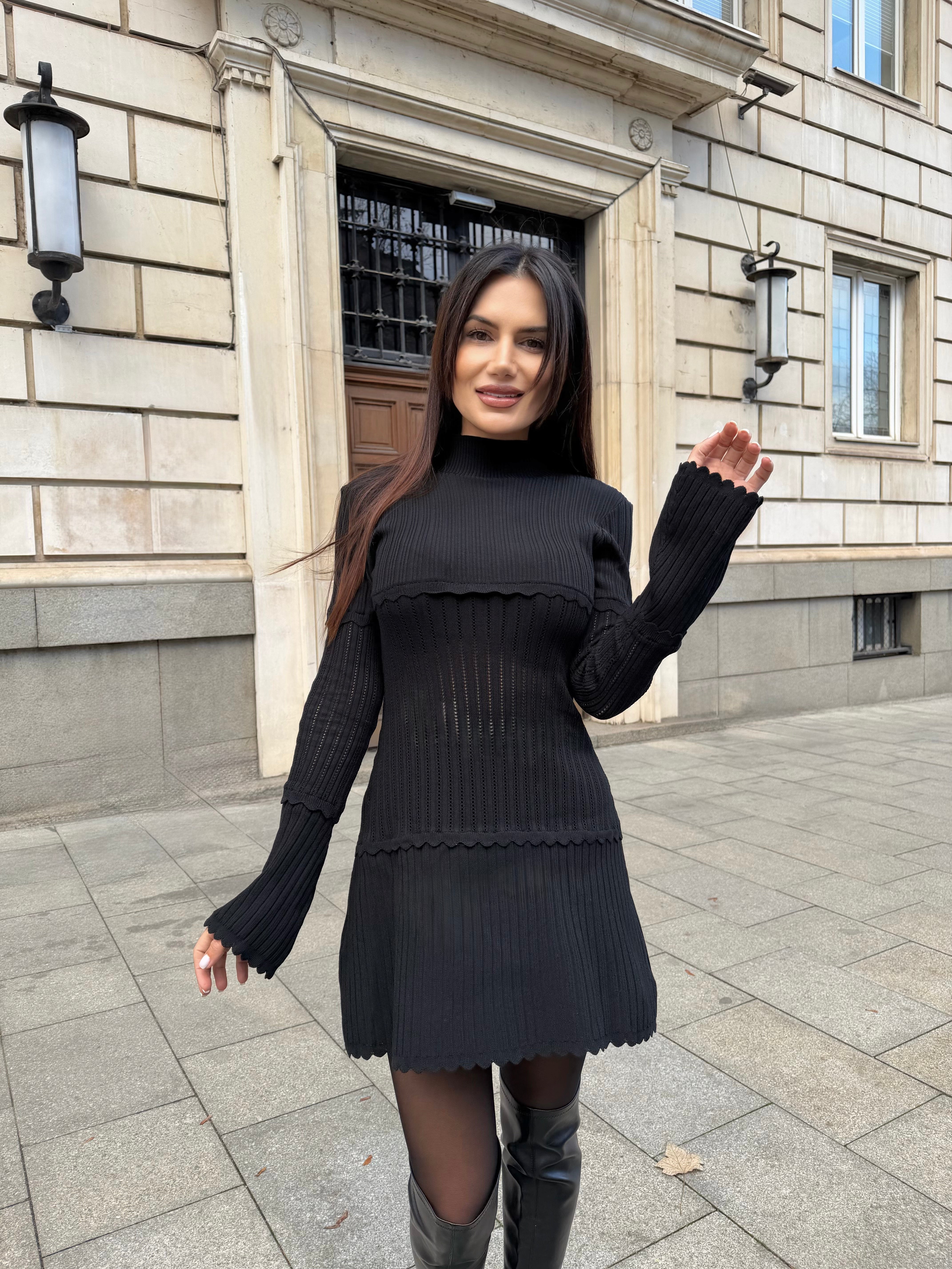 Inspirată de eleganța relaxată a parizienelor, LA PARISIENNE este o rochie care subliniază feminitatea fără efort. O structură fină tricotată care urmează liniile corpului, combinată cu finisaje delicate ondulate pentru o senzație de luxury knitwear.