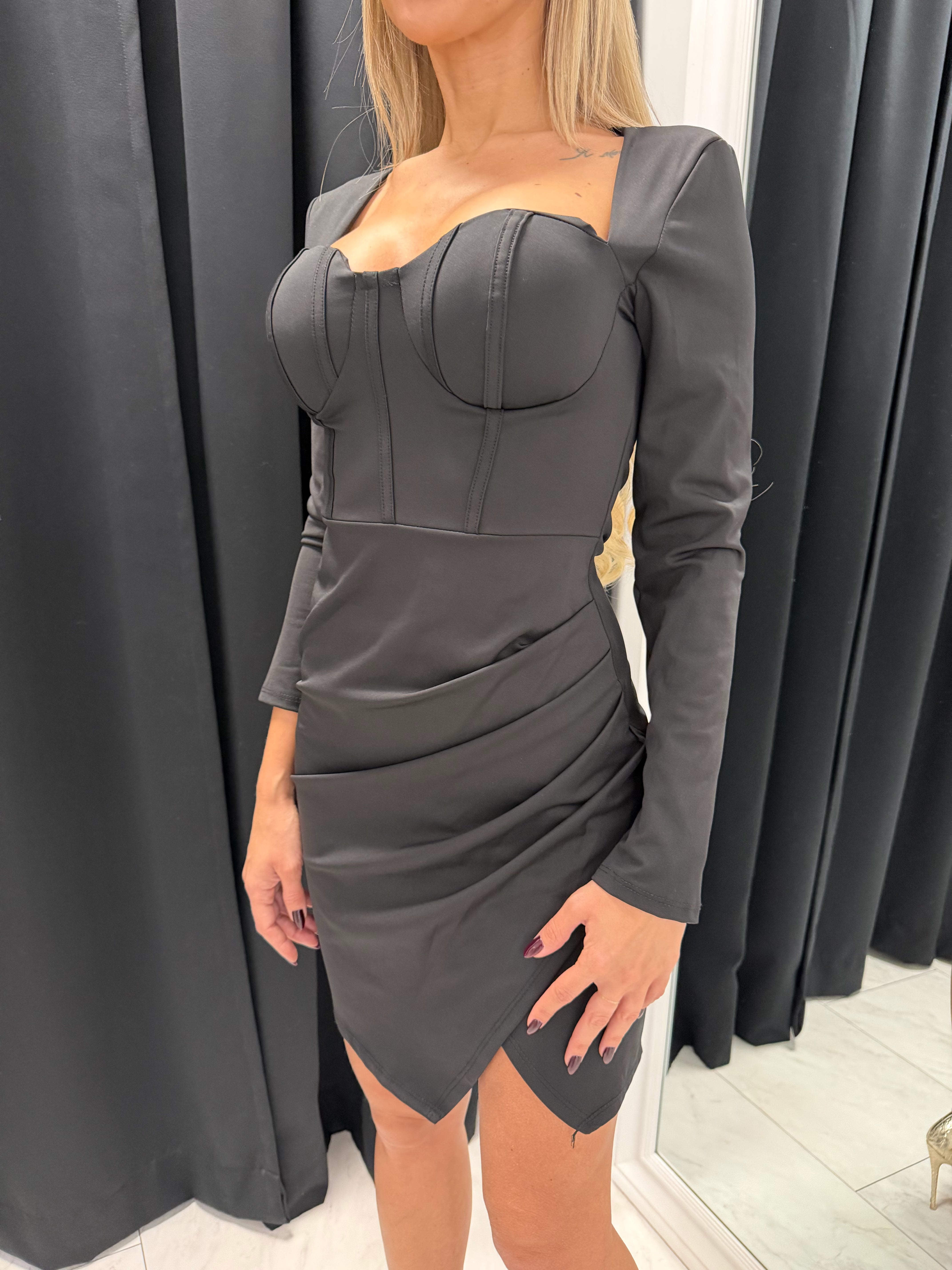 SCULPT DRESS - mini rochie cu efect de corset și fustă drapata