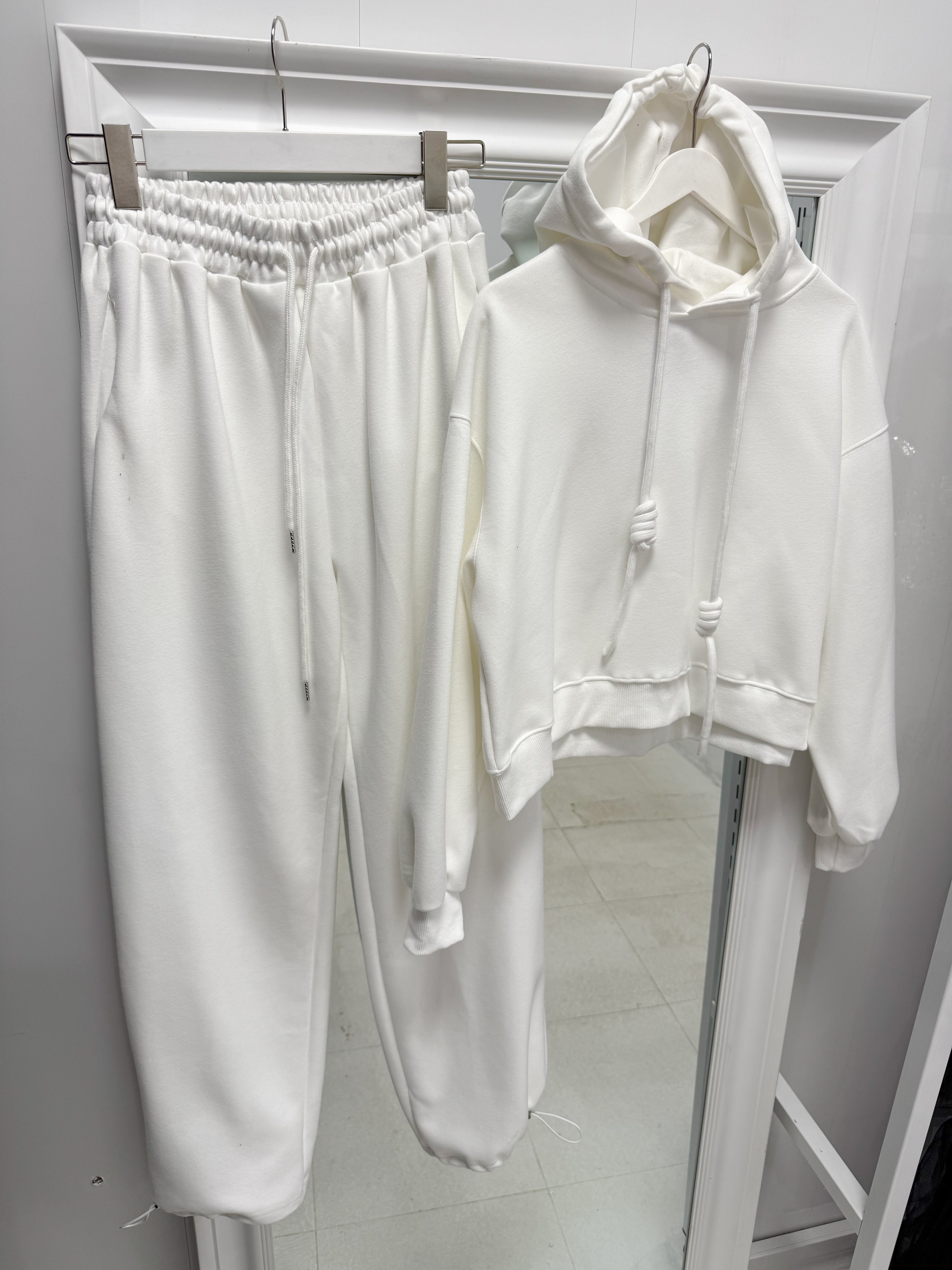 SET SPORT din două piese - Bluză lejeră cu decolteu rotund și glugă; pantaloni cu talie înaltă.