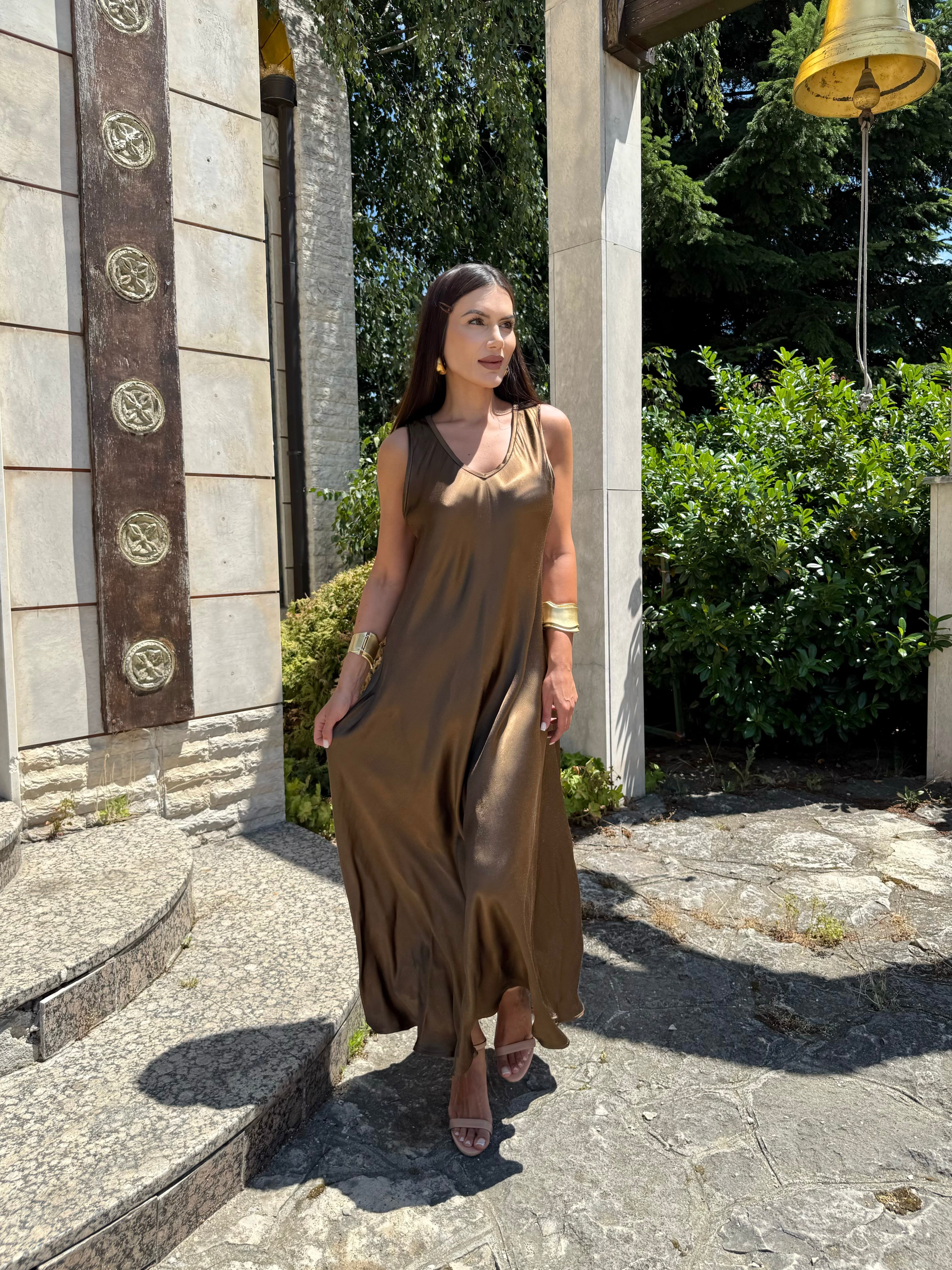 Champagne Glow – rochie lungă din satin