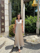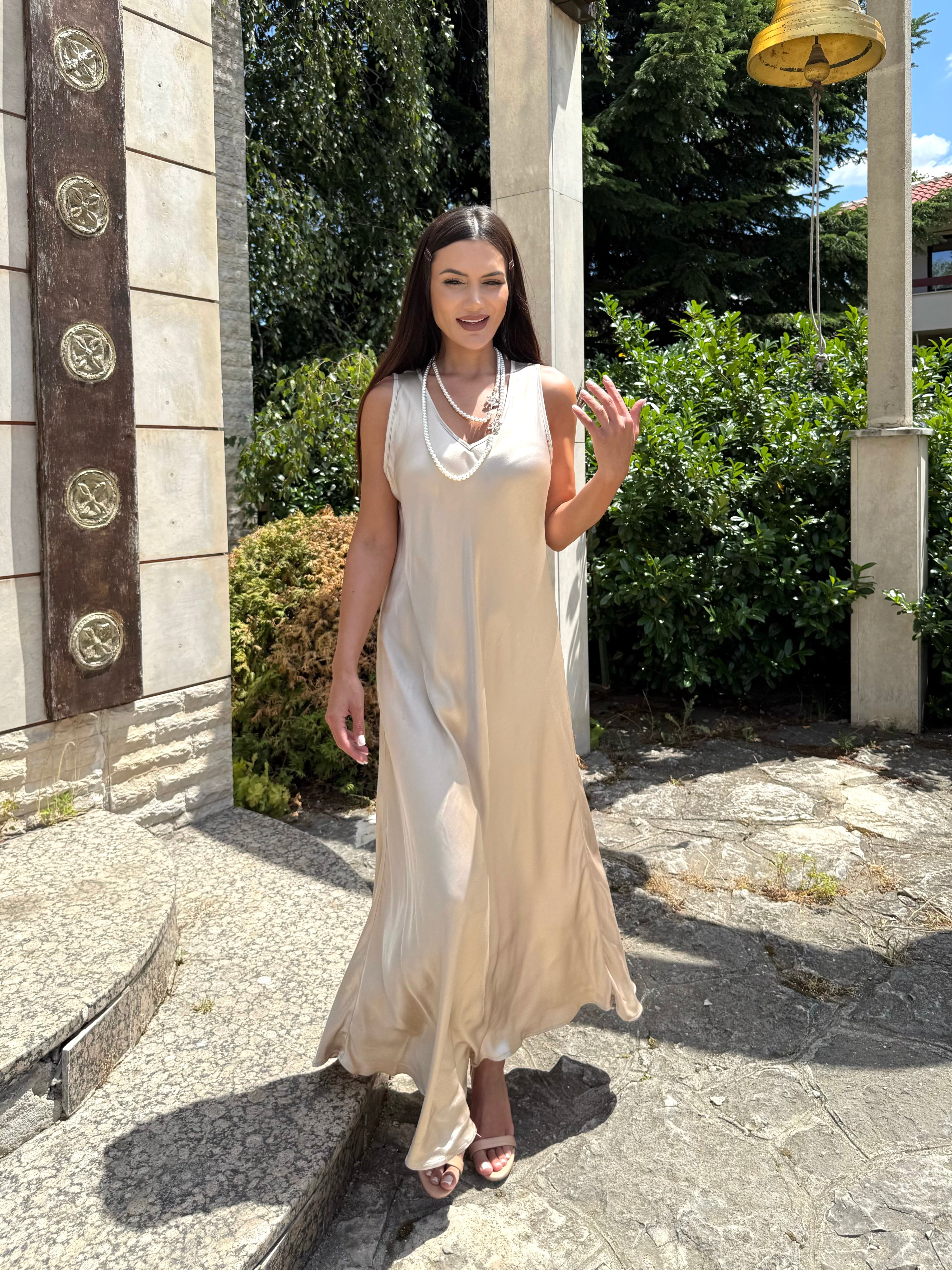 Disponibil în trei culori sofisticate – fildeș, șampanie și maro caramel – pentru a-ți exprima individualitatea. Alegerea ideală pentru ocazii speciale, ieșiri de seară sau un stil elegant de vară.