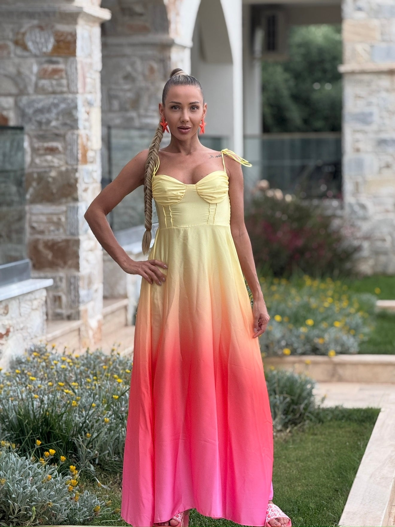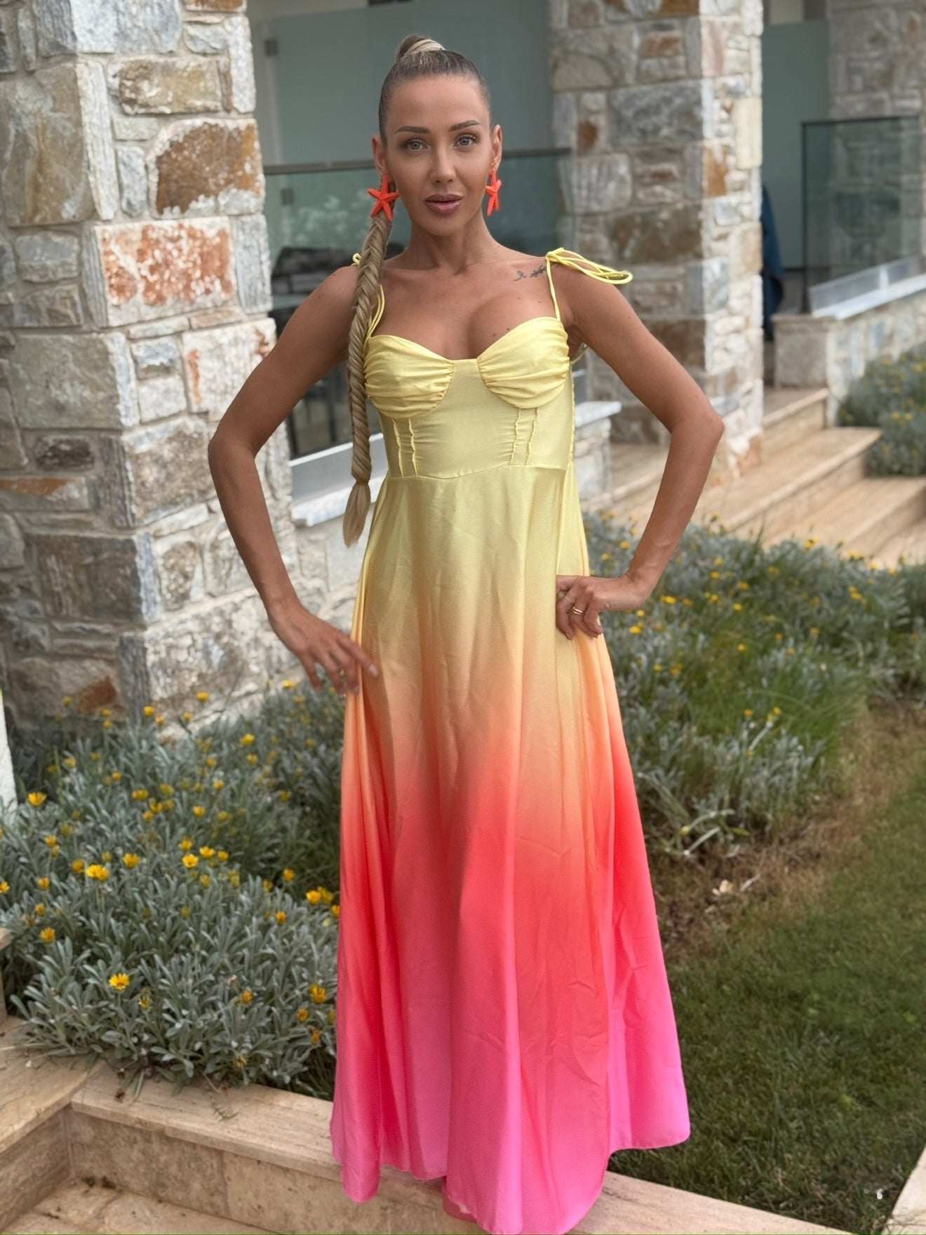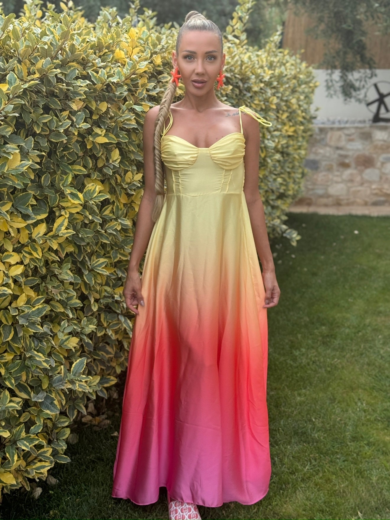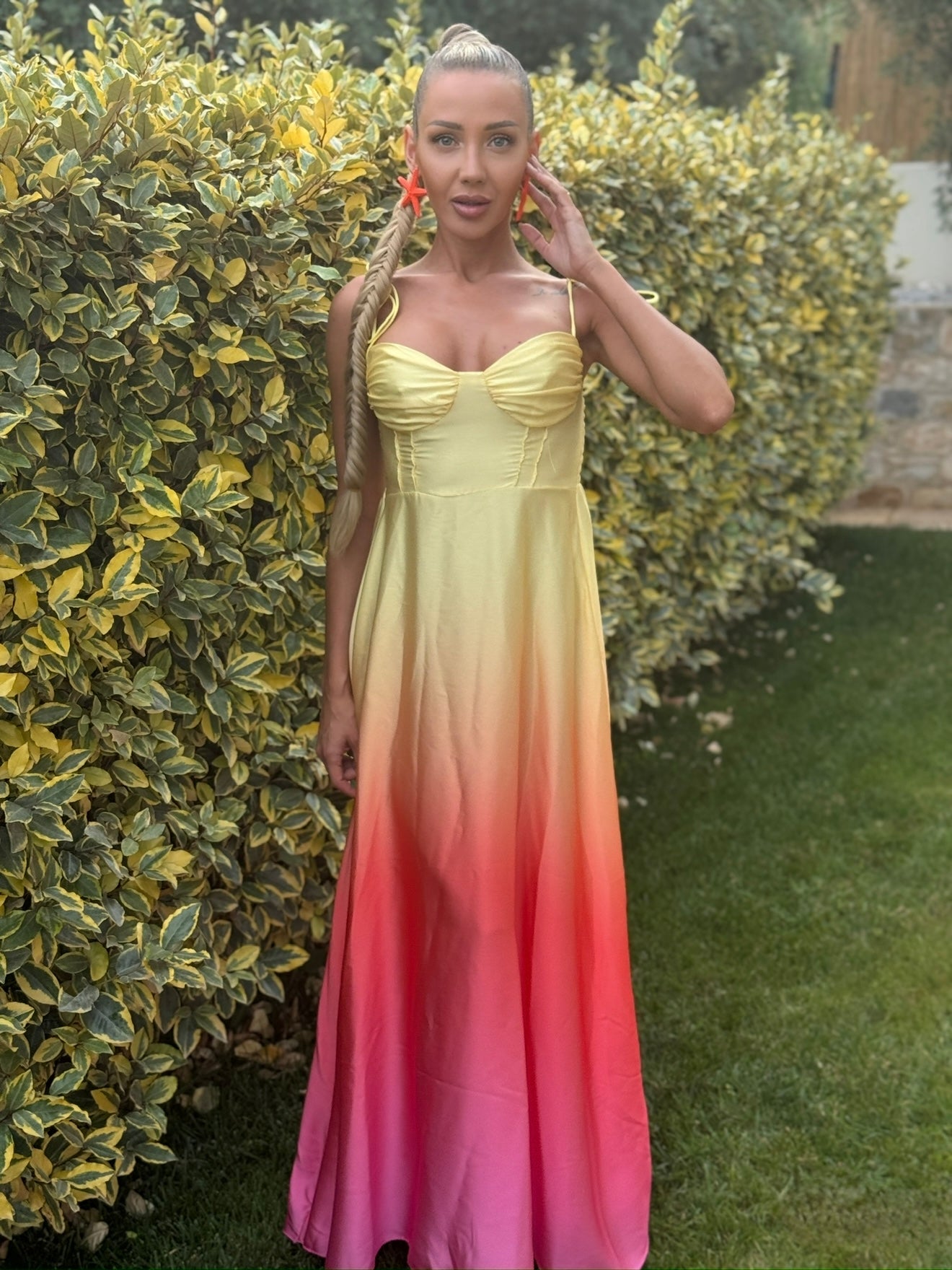Cufundă-te în magia eleganței de seară cu rochia „Moonlight Ombre”. Confecționată din satin cu un luciu delicat și o tranziție lină de la galben la nuanța de ciclam, această rochie este sinonimă cu stilul sofisticat. Bretelele reglabile asigură o potrivire perfectă, iar materialul ușor creează confort la fiecare mișcare. Potrivită pentru ocazii speciale, seri romantice sau evenimente elegante.