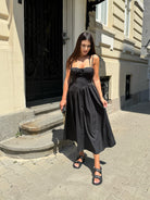 MARINA în negru este un clasic cu personalitate. Croiala cambrată subliniază talia și conturează o siluetă elegantă, alungită, iar cupele cu burete oferă stabilitate și o linie frumoasă bustului.