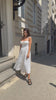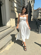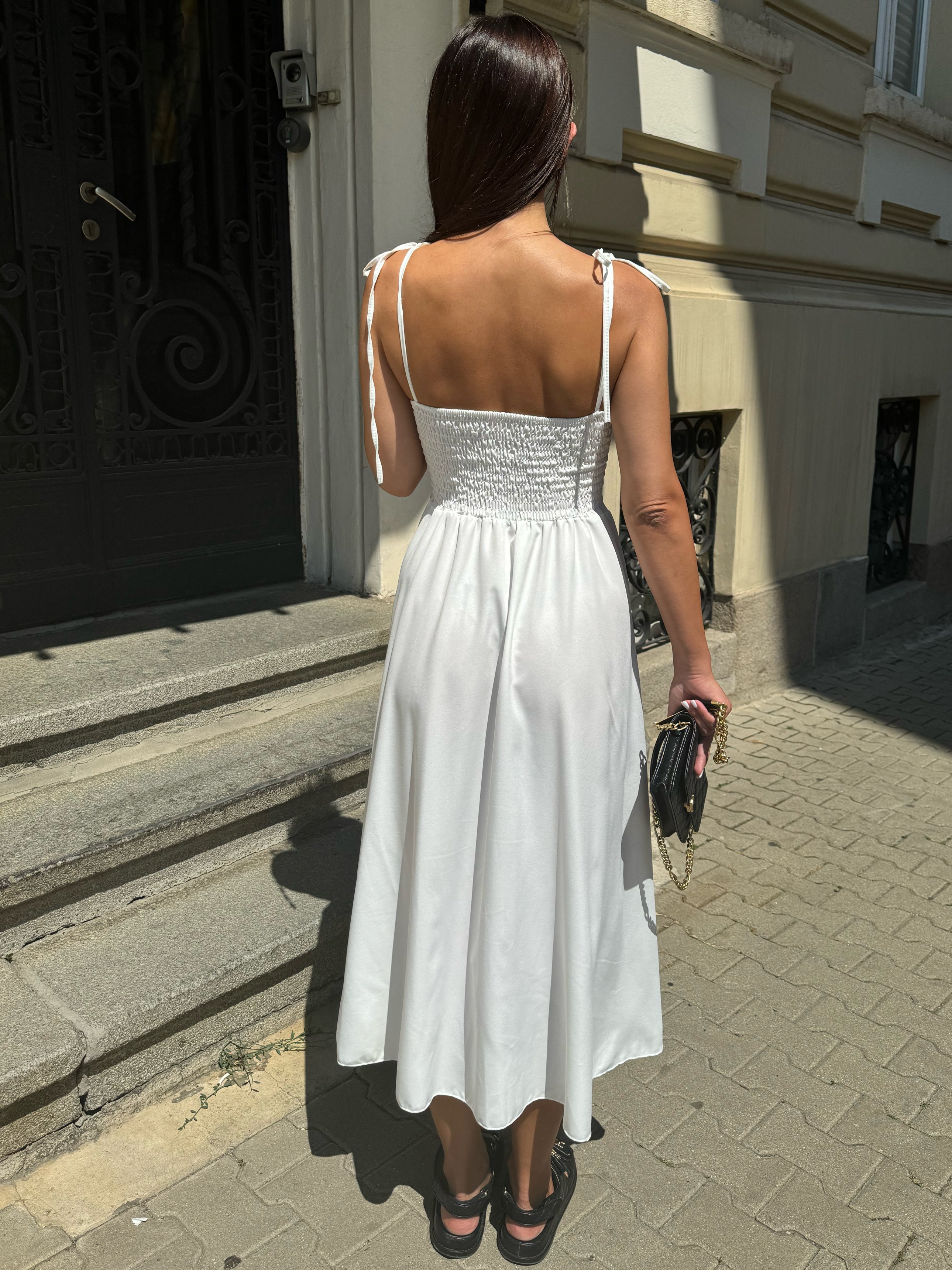 Culoarea albă conferă un aspect curat, sofisticat – o alegere ideală pentru o vacanță la mare, evenimente de vară sau o seară romantică.