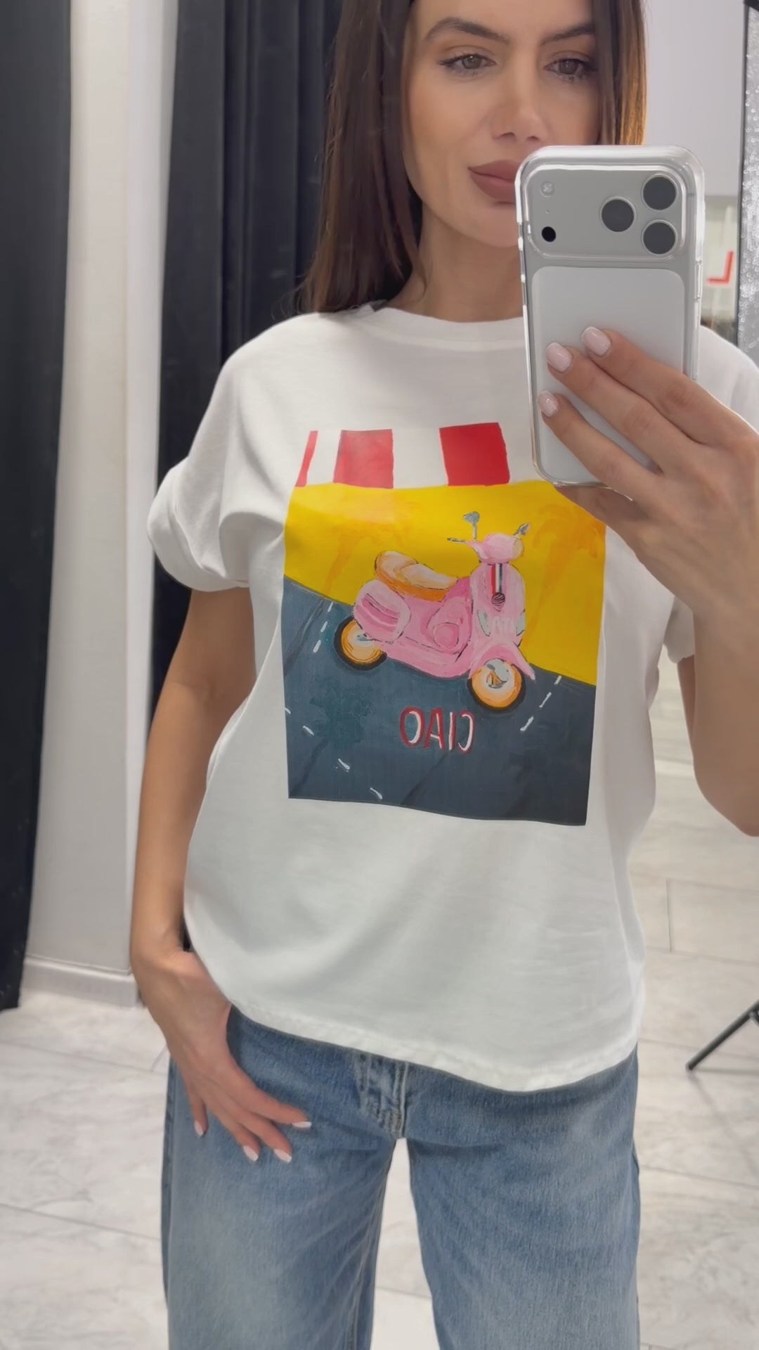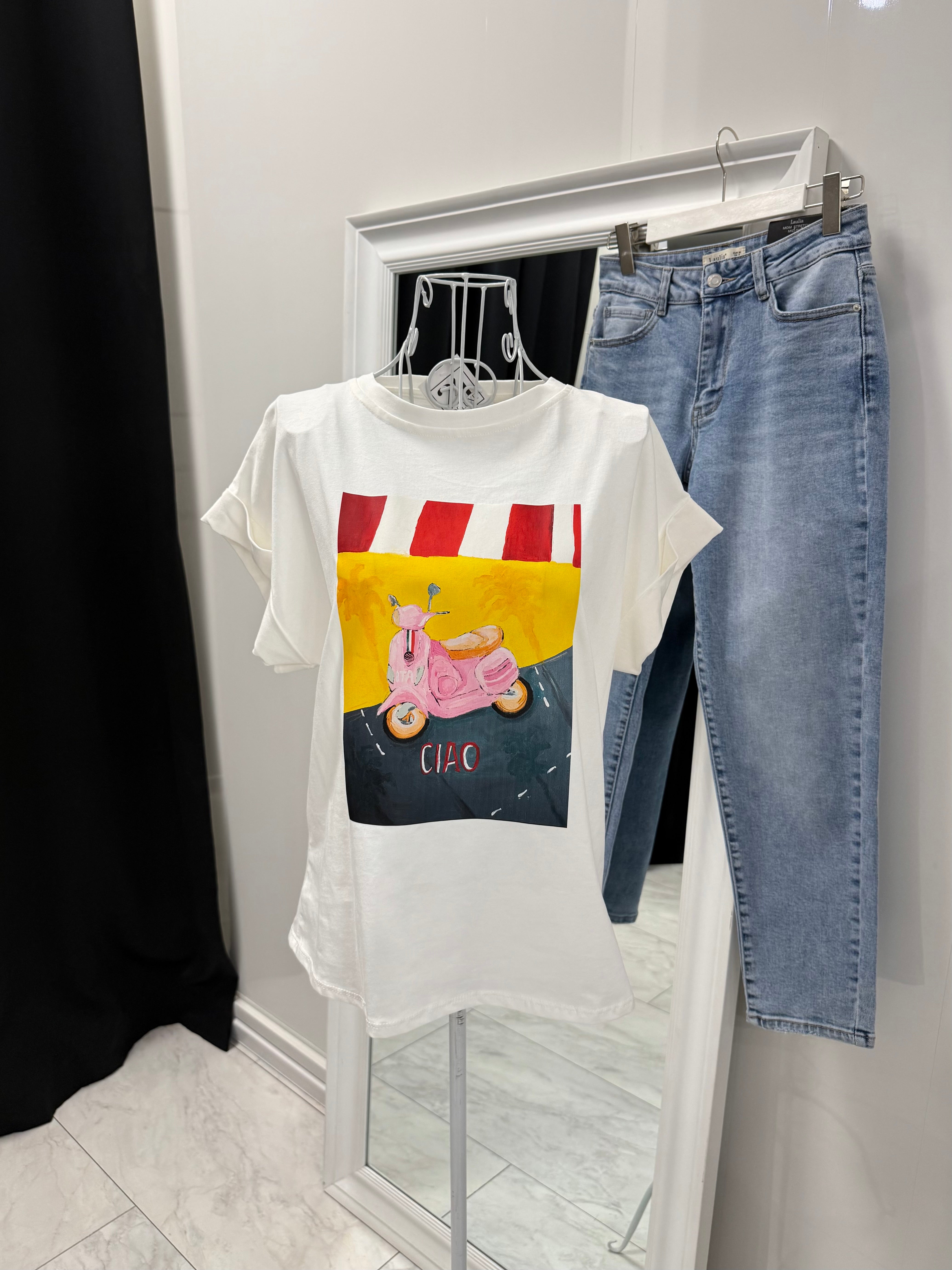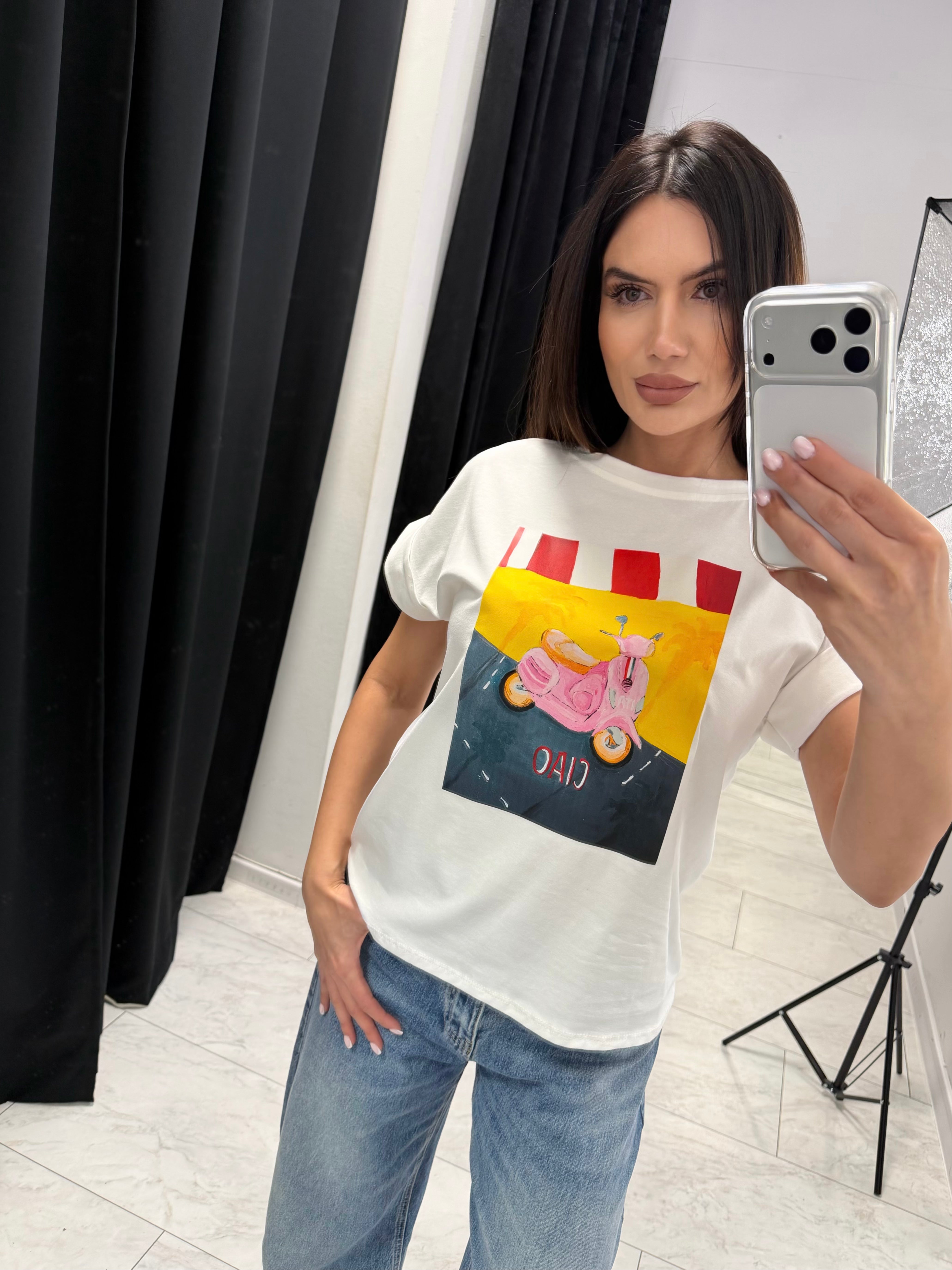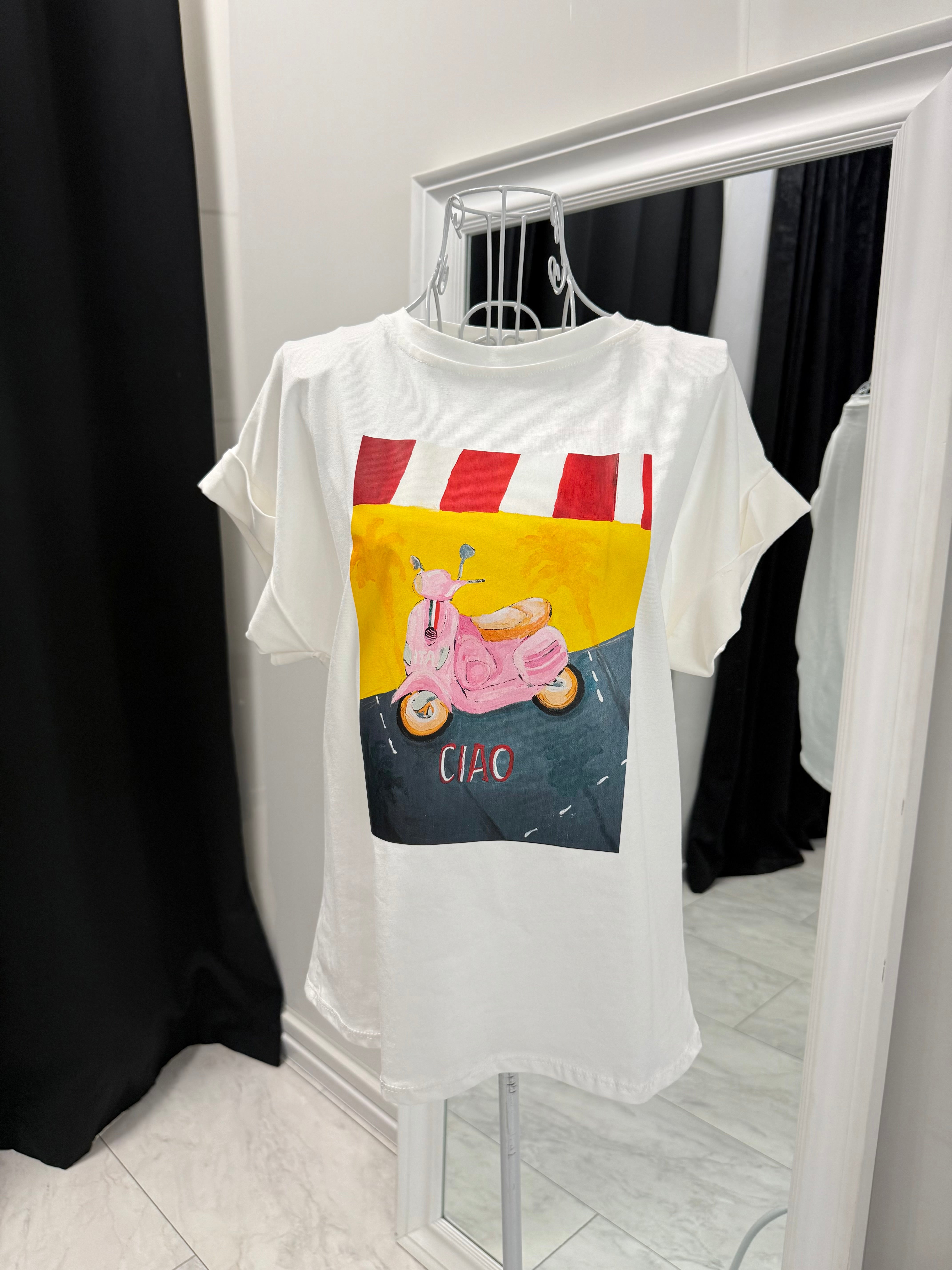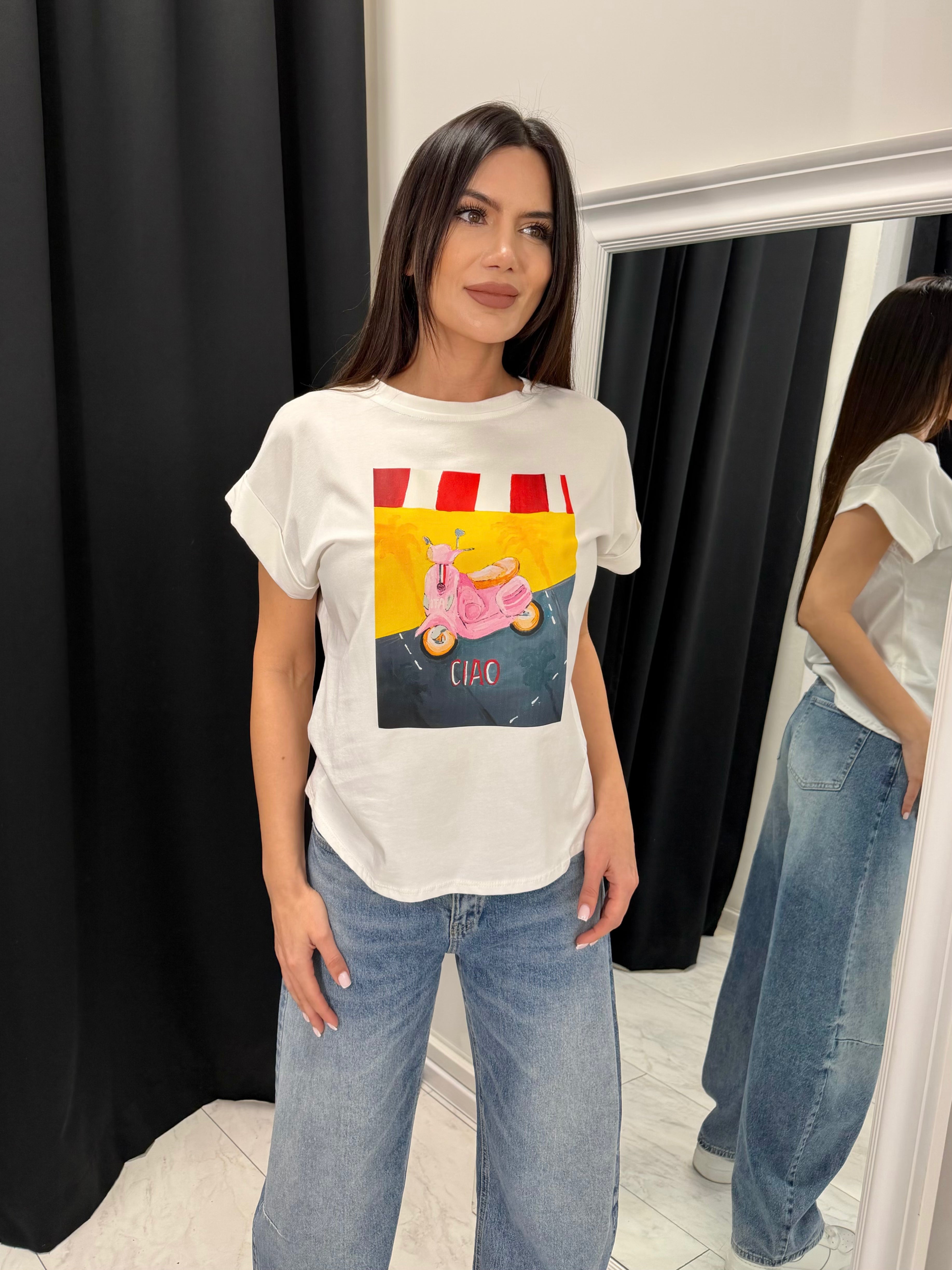 Tricoul CIAO VESPA aduce o senzație de vară italiană și o stare de spirit lipsită de griji.