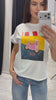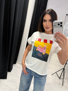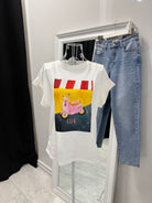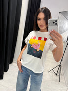 Imprimeul artistic cu un scuter retro roz și textul „Ciao” adaugă un accent proaspăt și feminin oricărei combinații de zi cu zi. Silueta lejeră și materialul moale de bumbac cu elasticitate garantează confort și lejeritate pe tot parcursul zilei.
