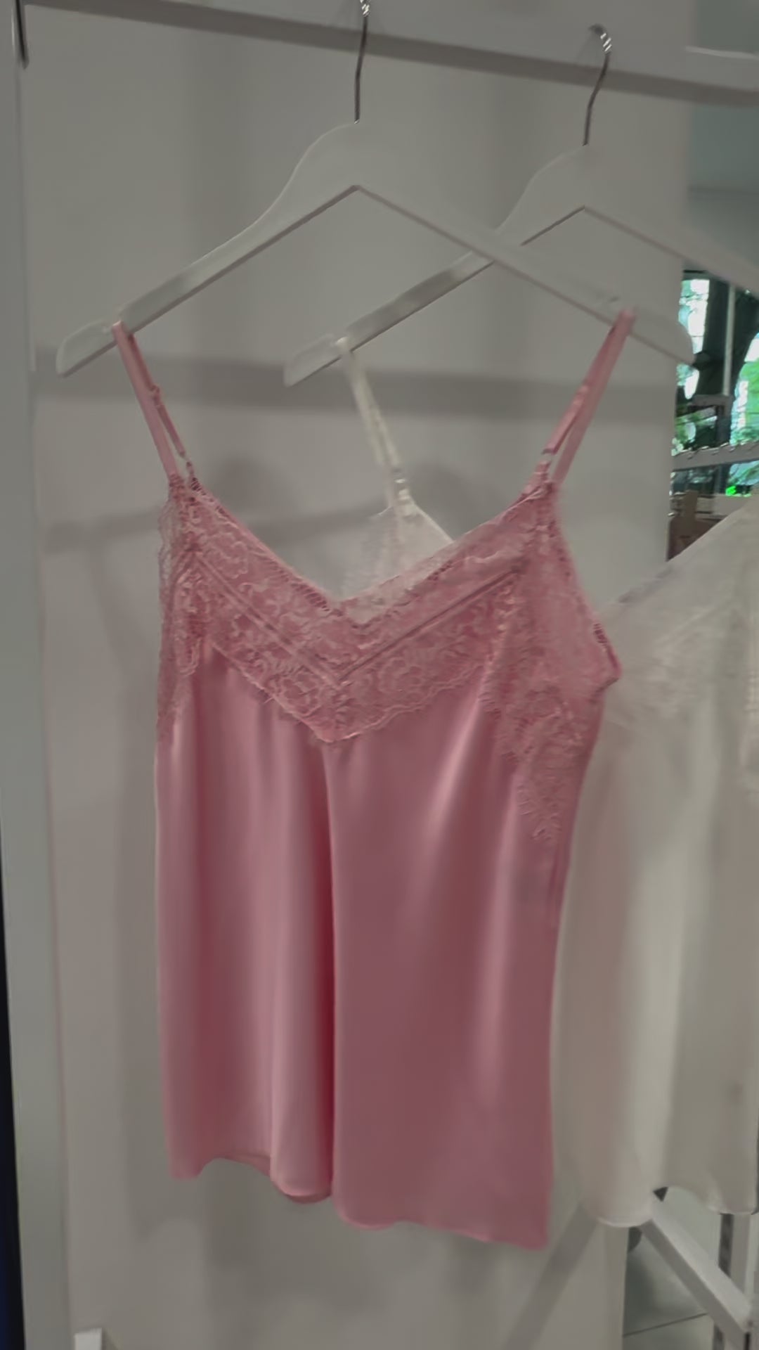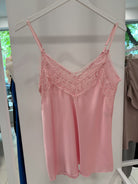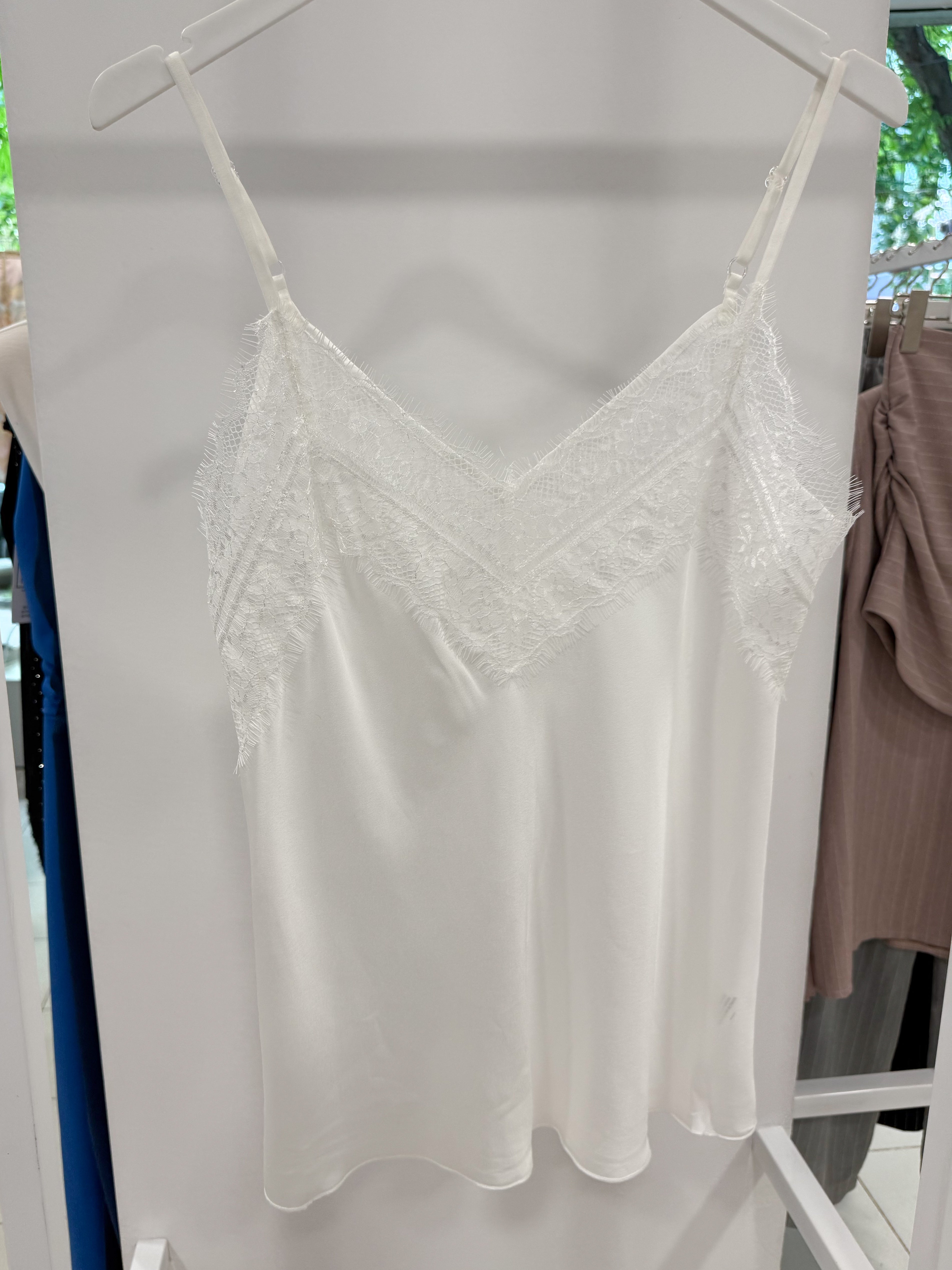 PULOVER DIN SATIN CU DANTELĂ la decolteul din față.