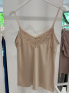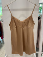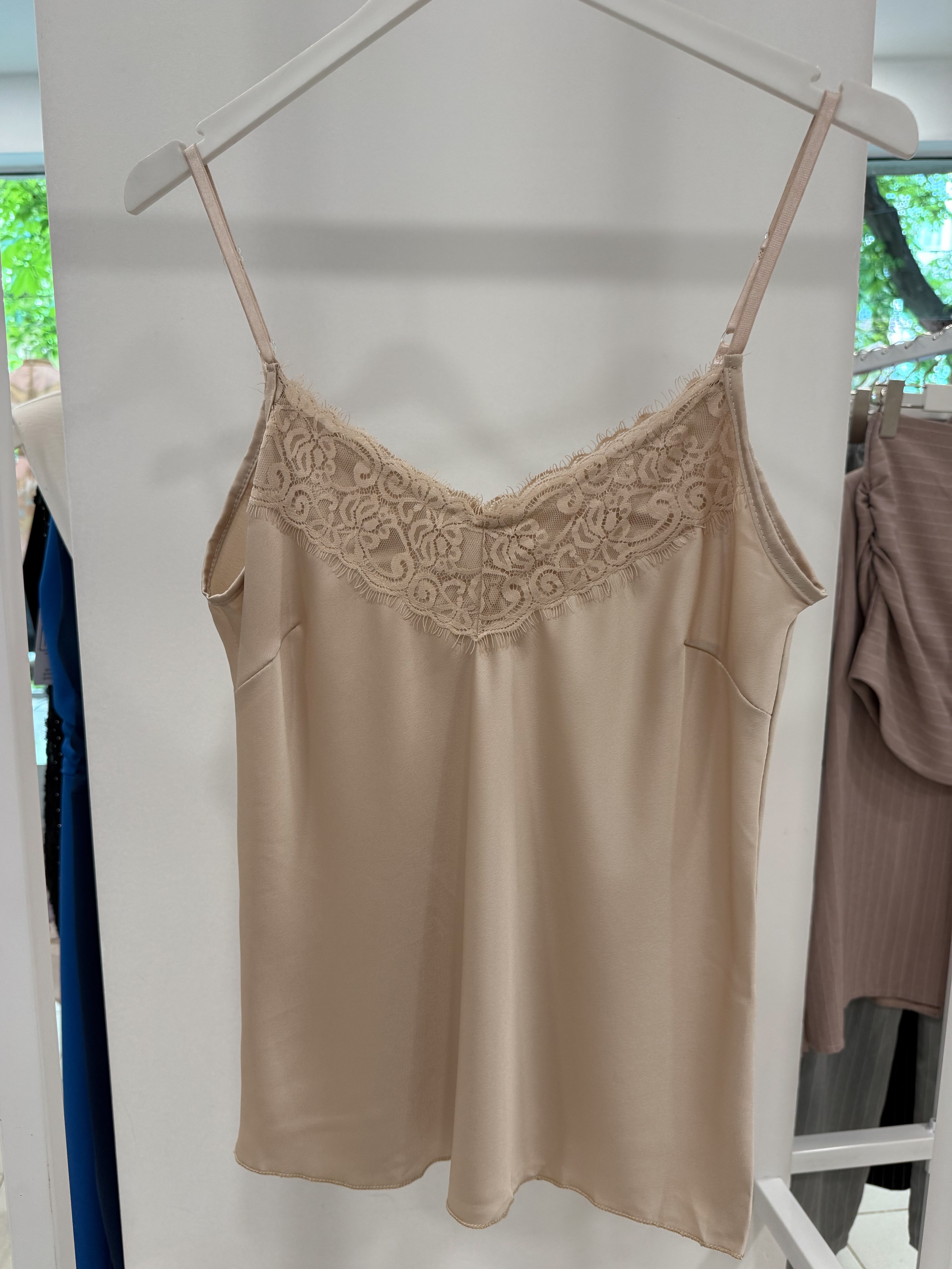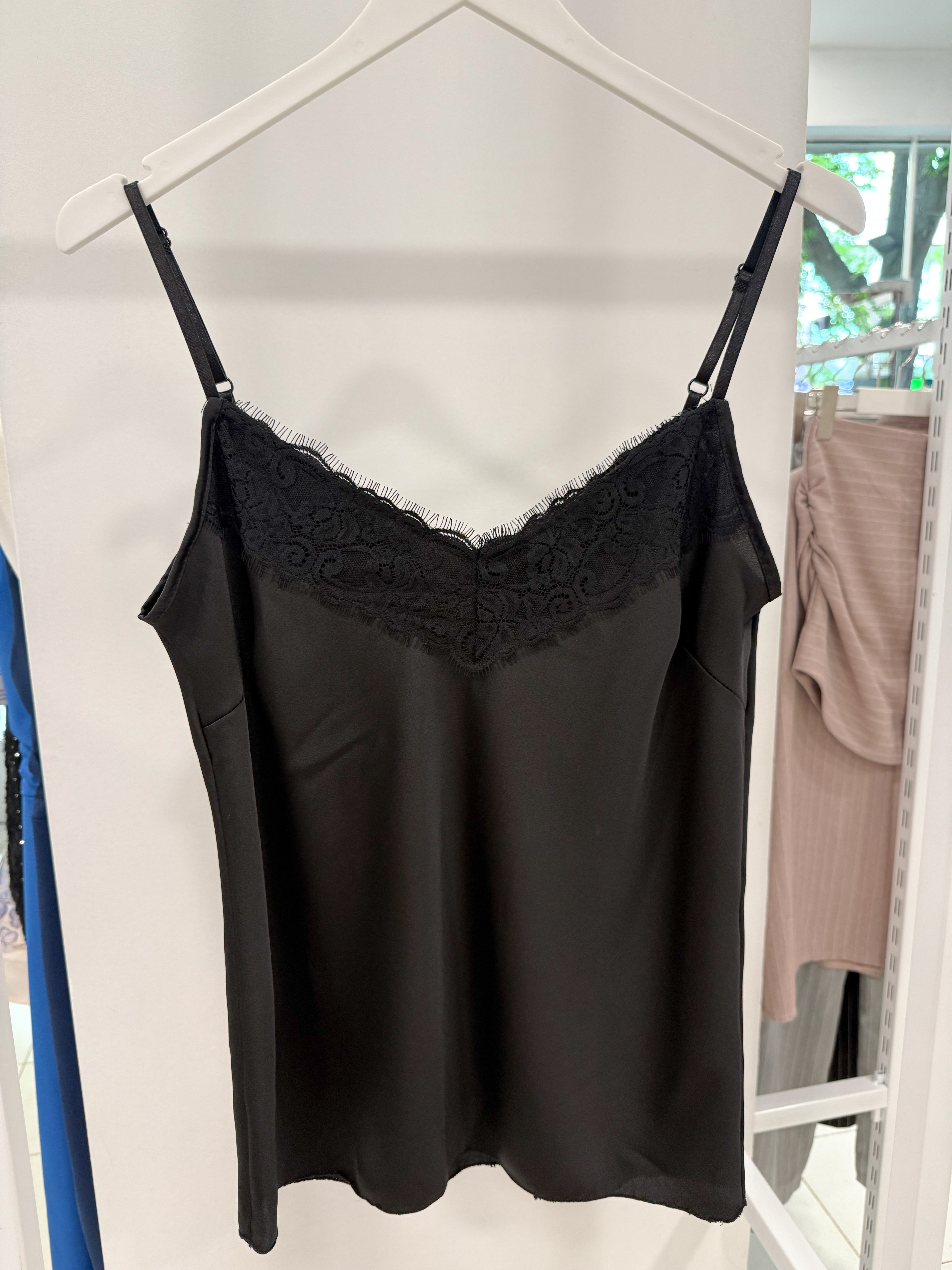 PULOVER DIN SATIN CU DANTELĂ la decolteul din față și din spate.