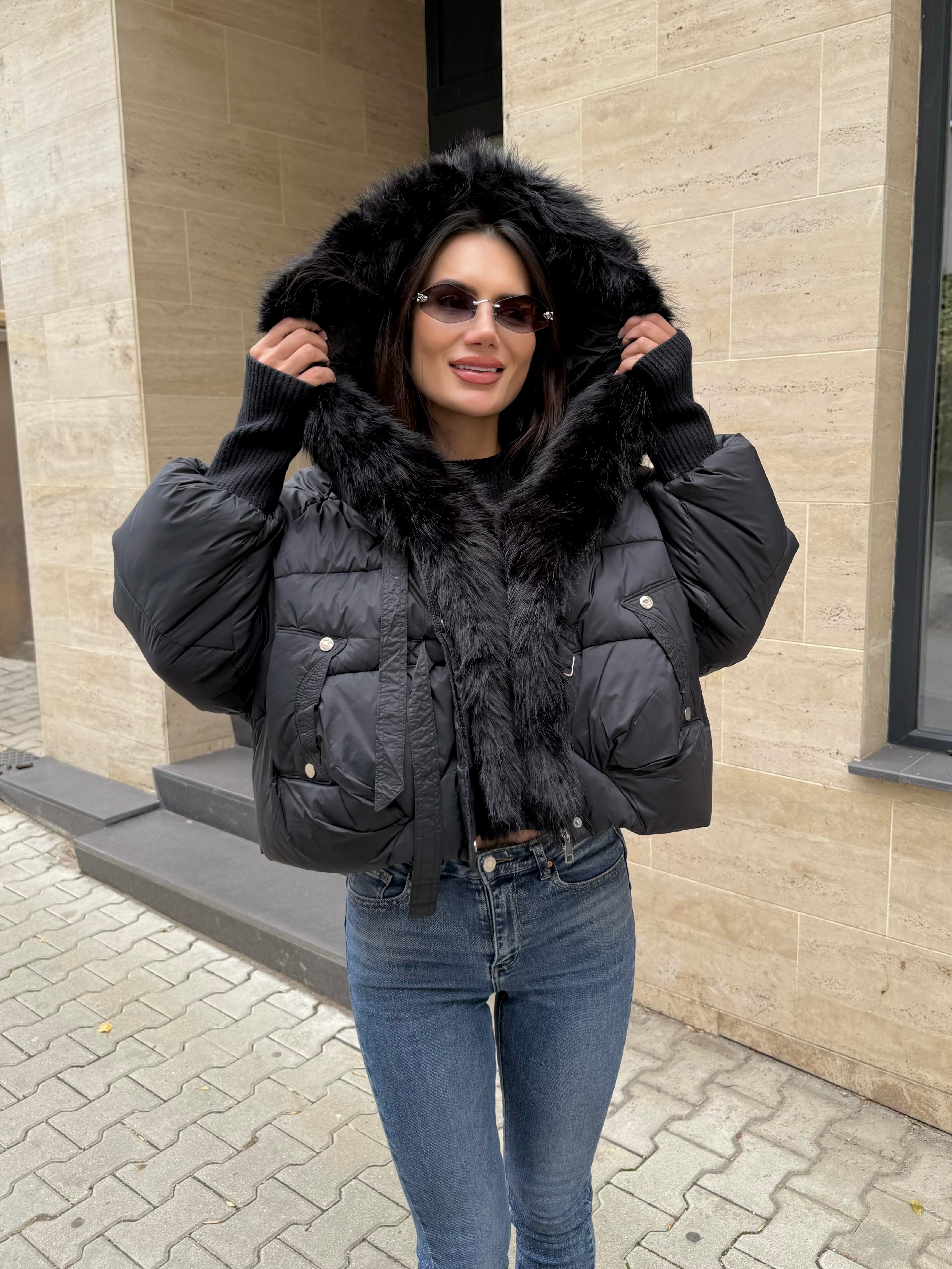 LUX FUR Jacket – Geacă din puf cu guler pufos