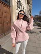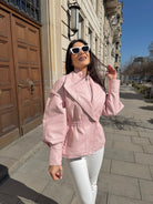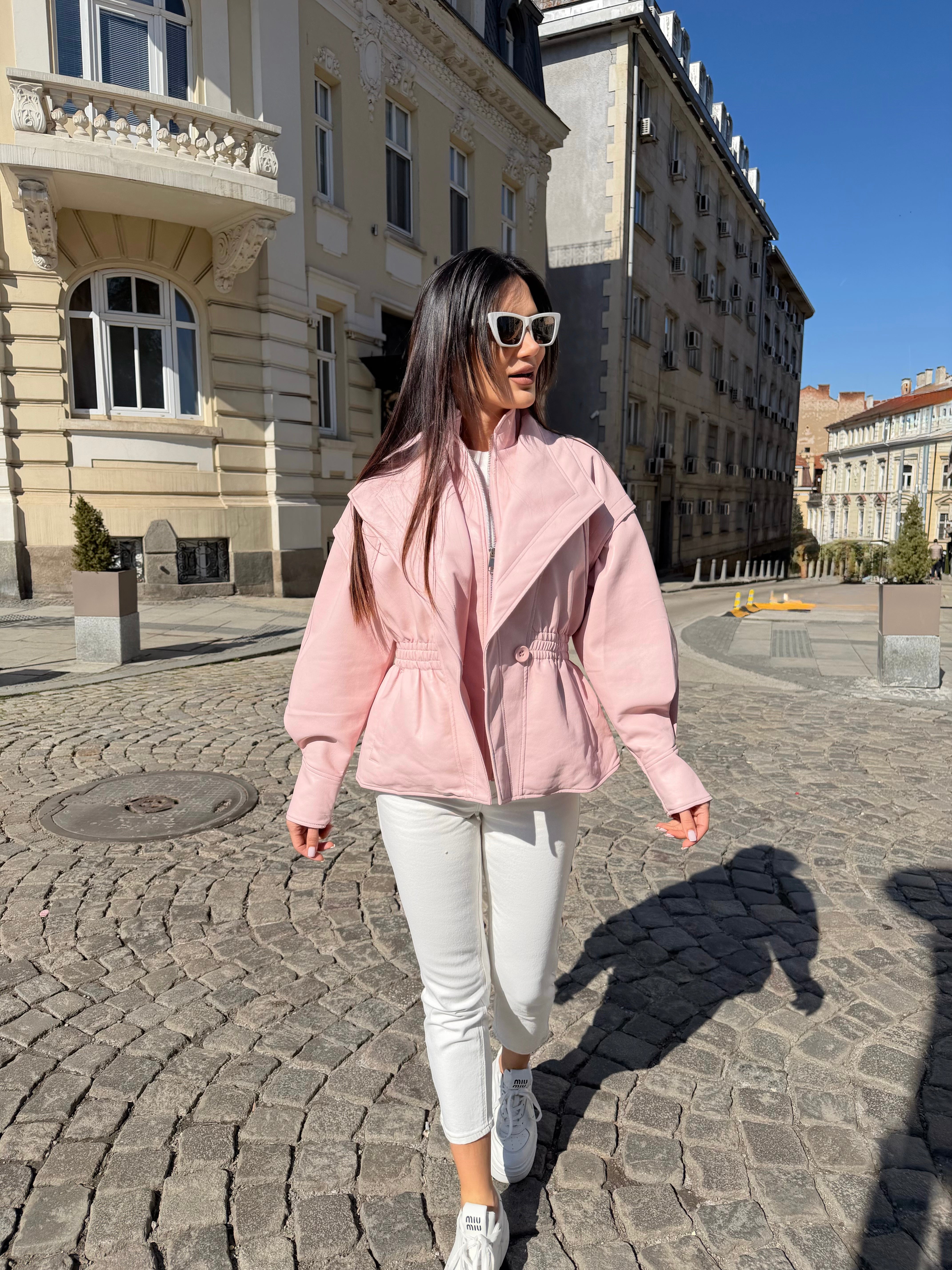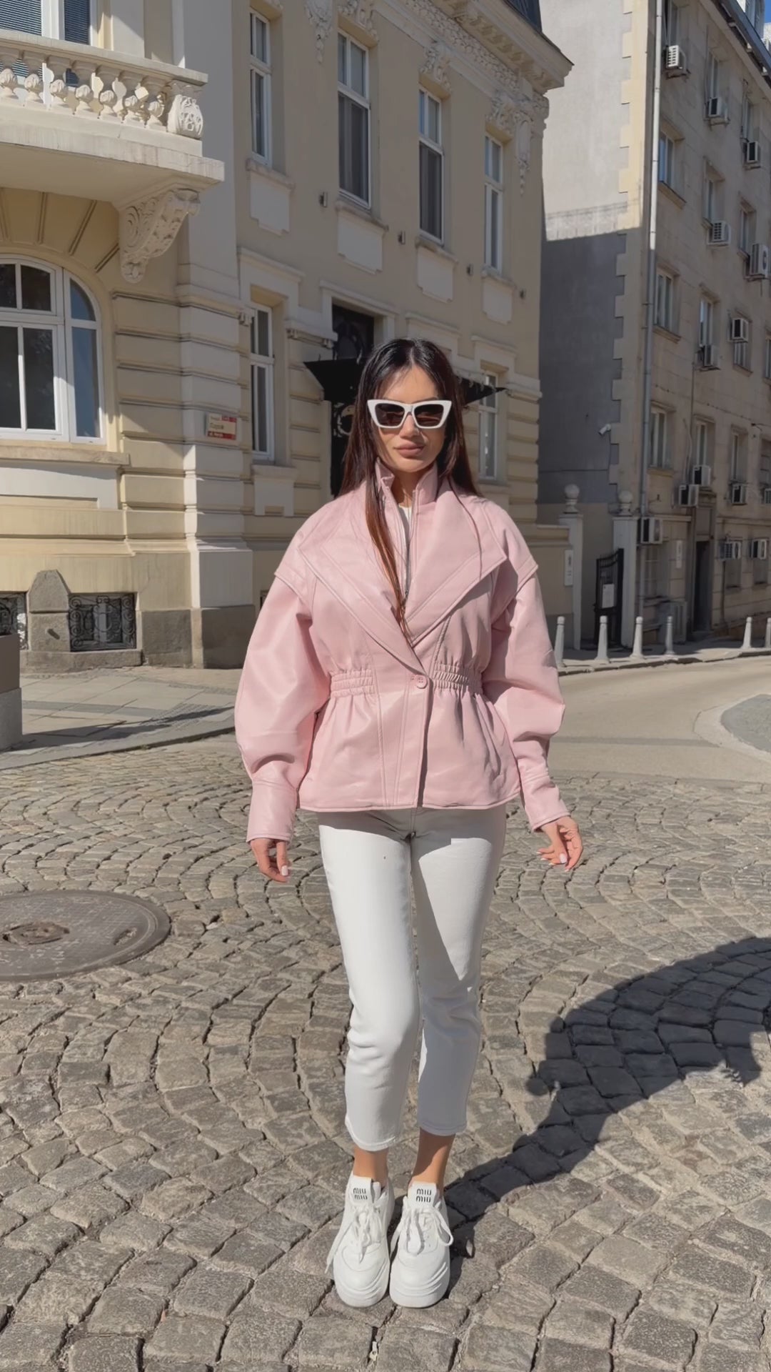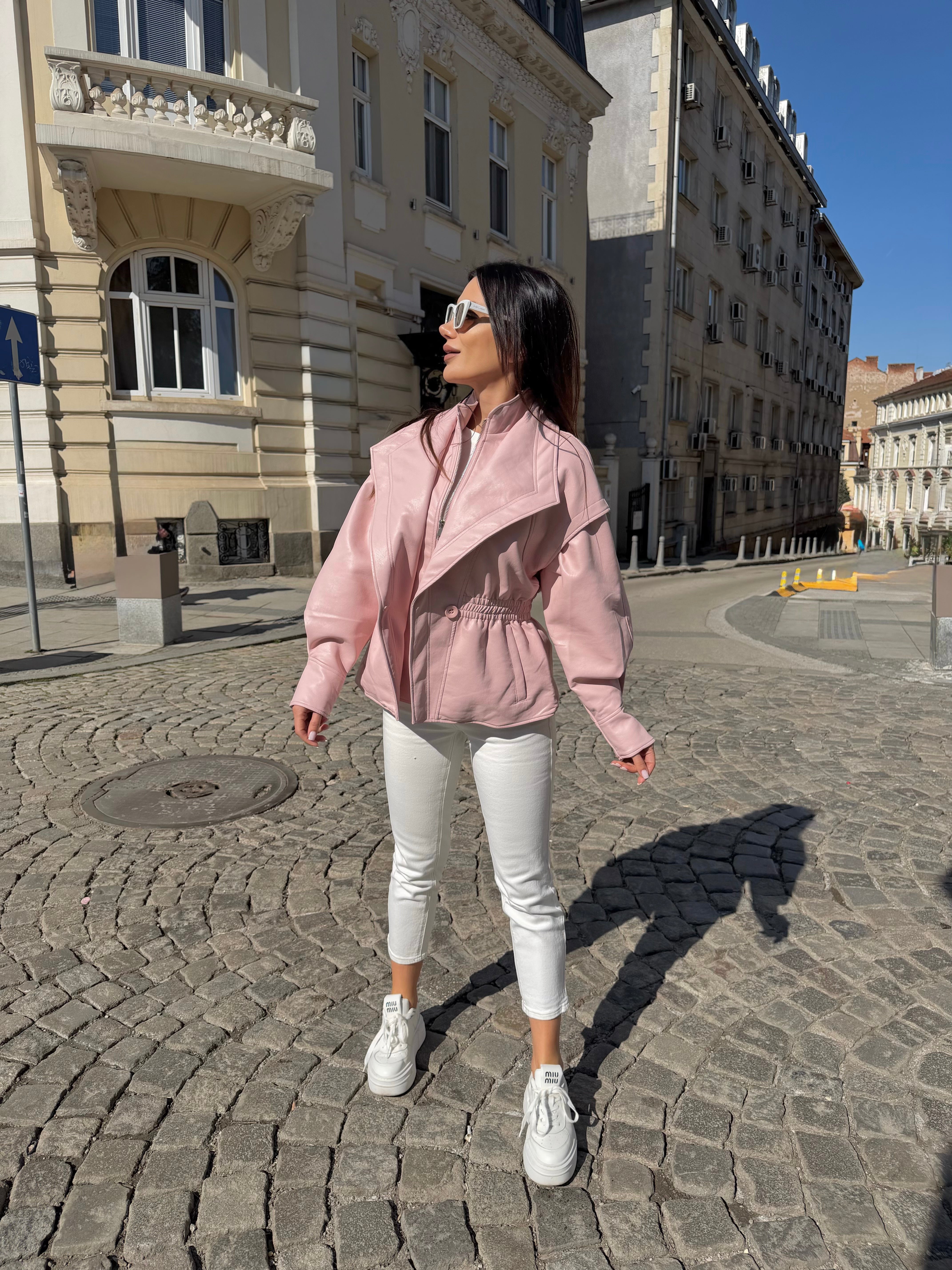 Siluetă modernă și prezență impresionantă. Această jachetă din piele ecologică se remarcă prin mâneci bufante și strângere în talie, care subliniază frumos silueta. Confecția de lux și linia elegantă o transformă într-un model must-have al sezonului.