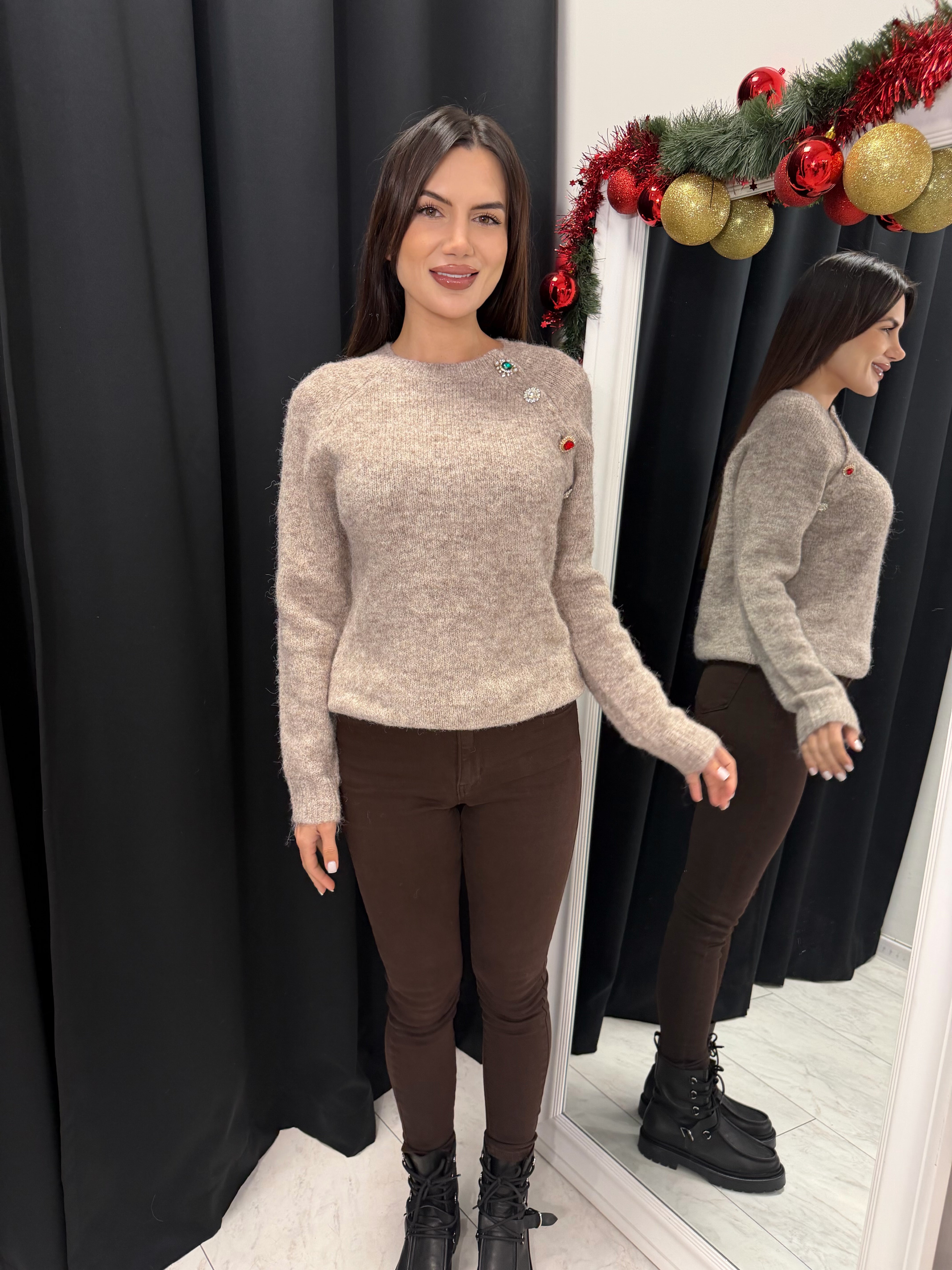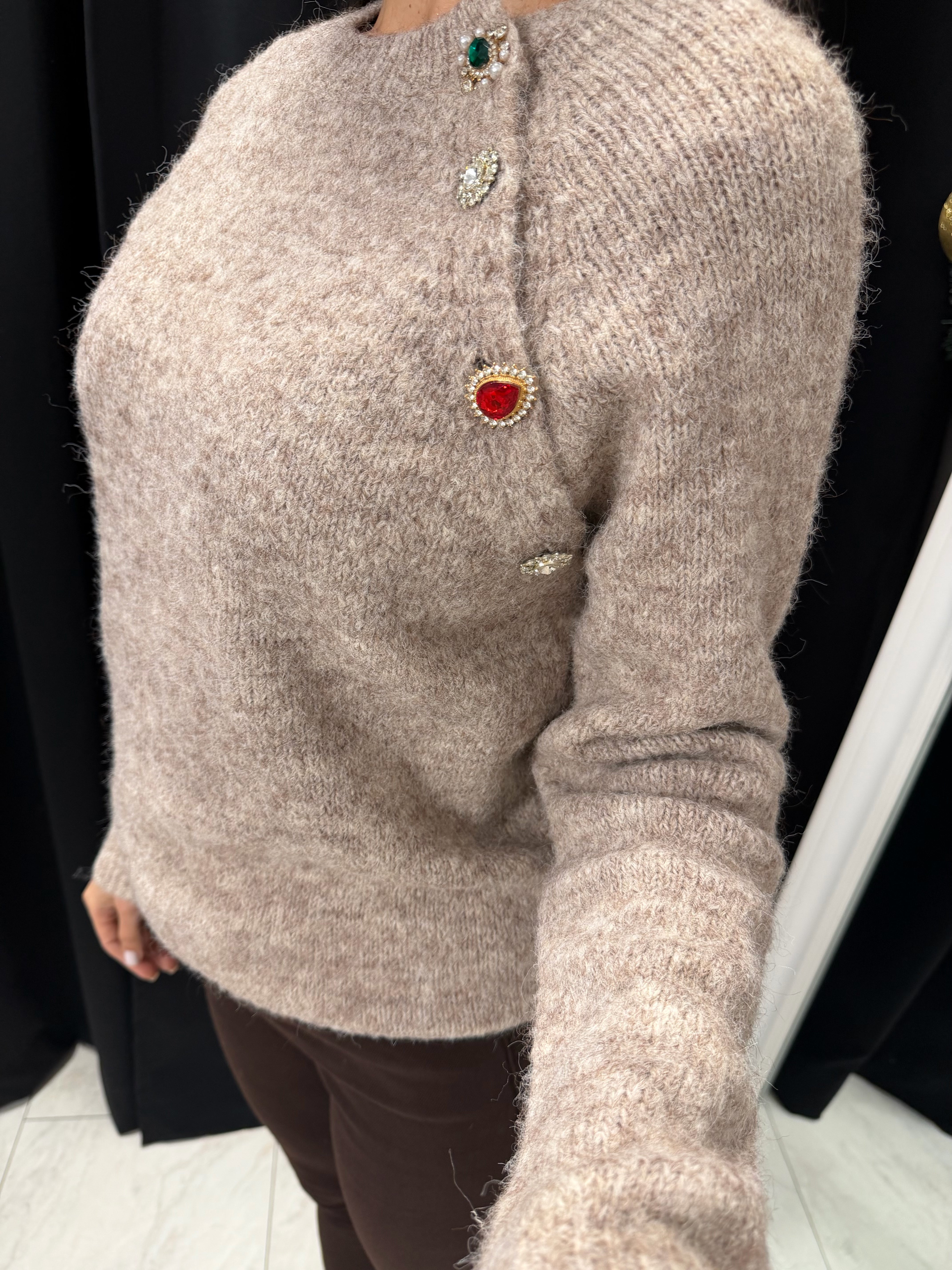 Pulover cu nasturi bijuterie — Ediție Soft Luxe