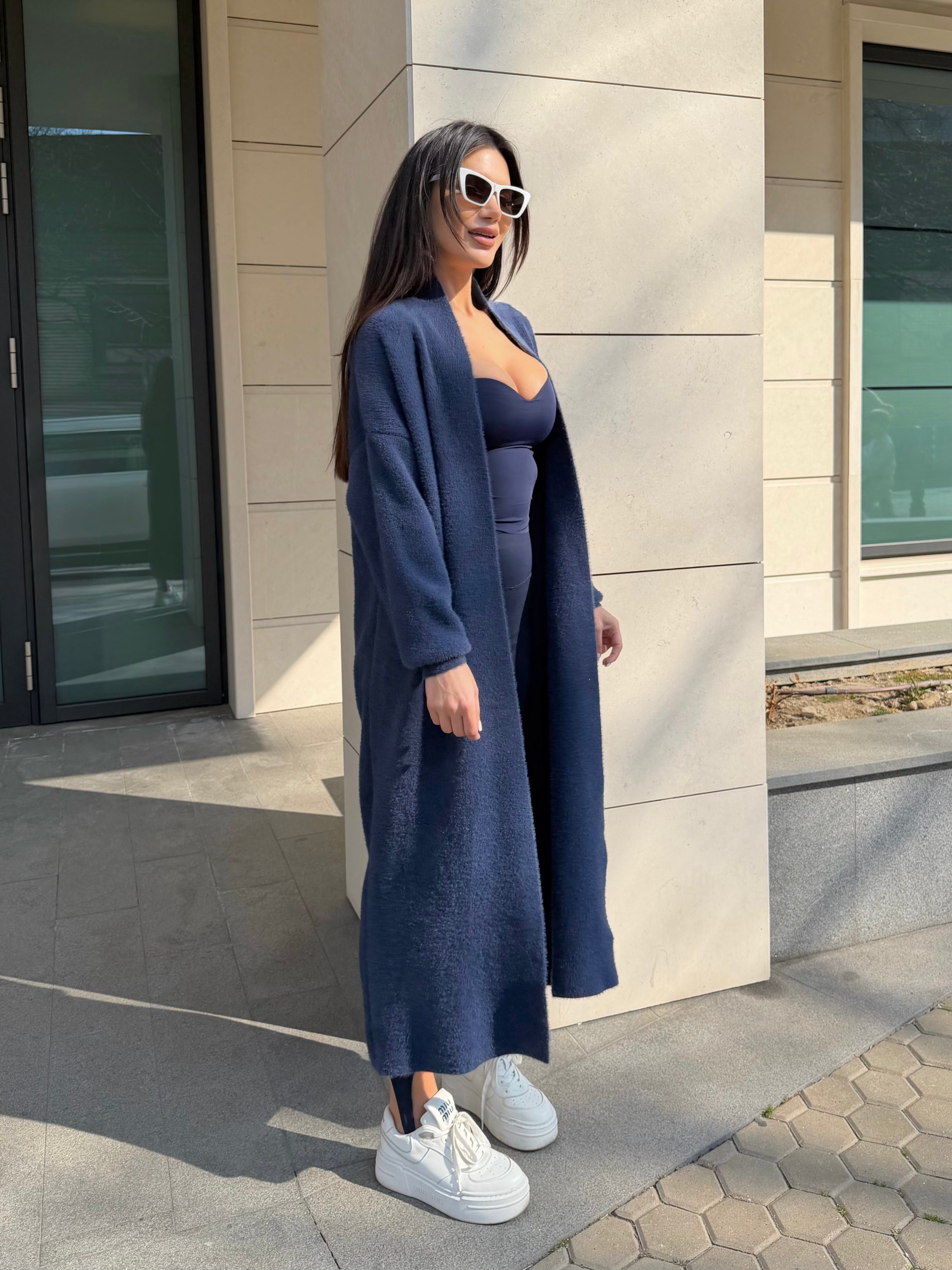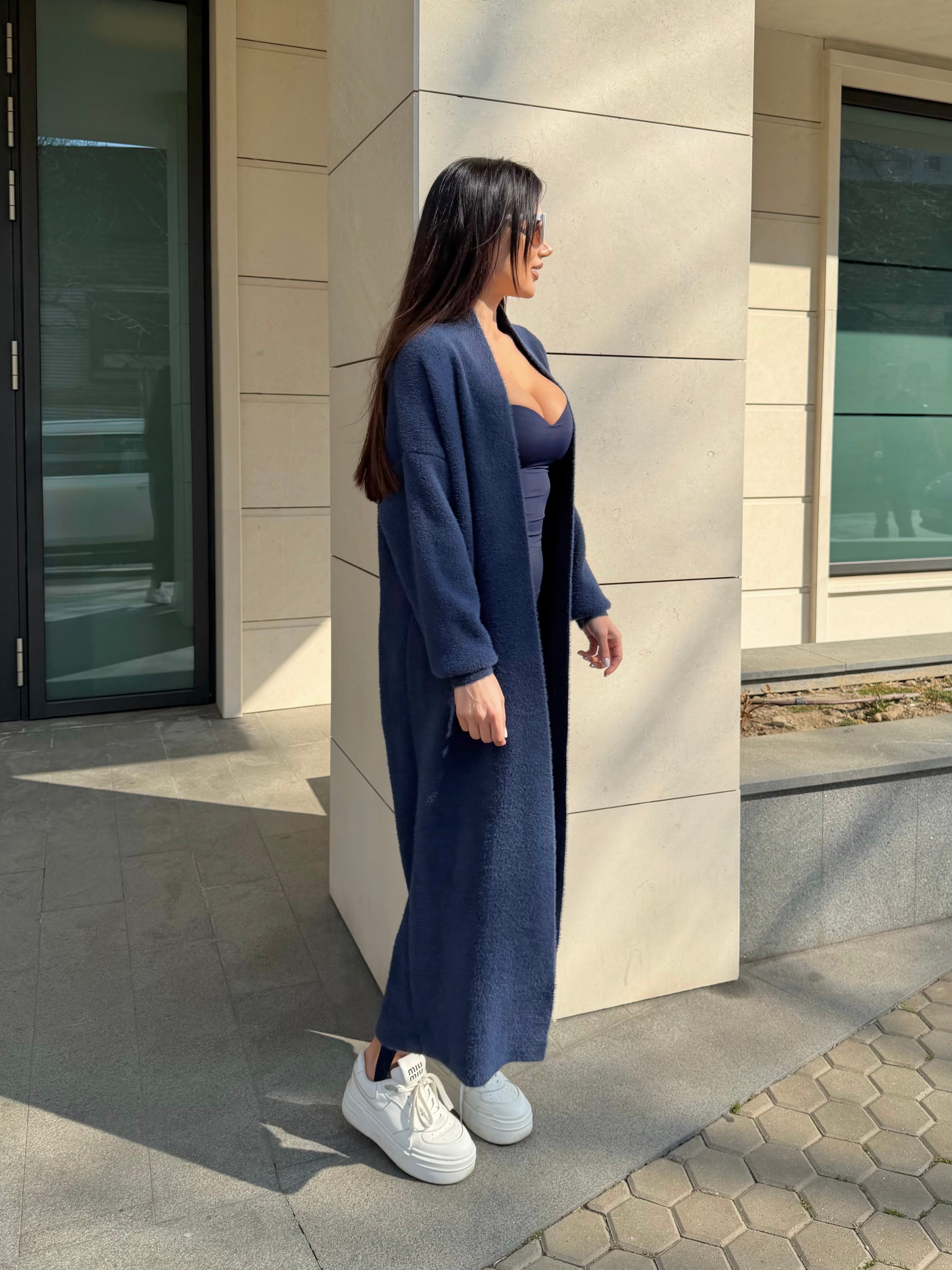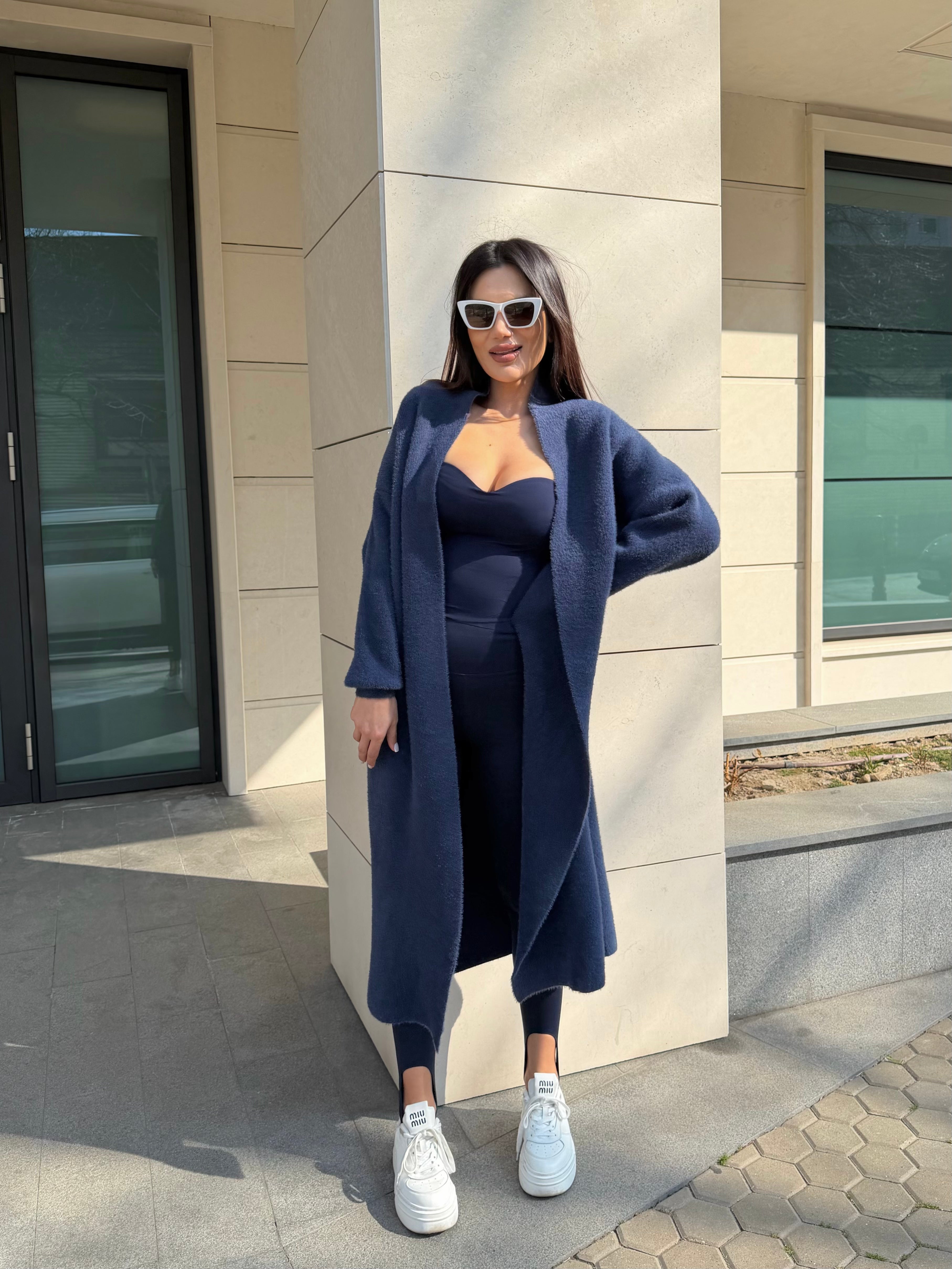 Cozy Luxe Navy – cardigan lung