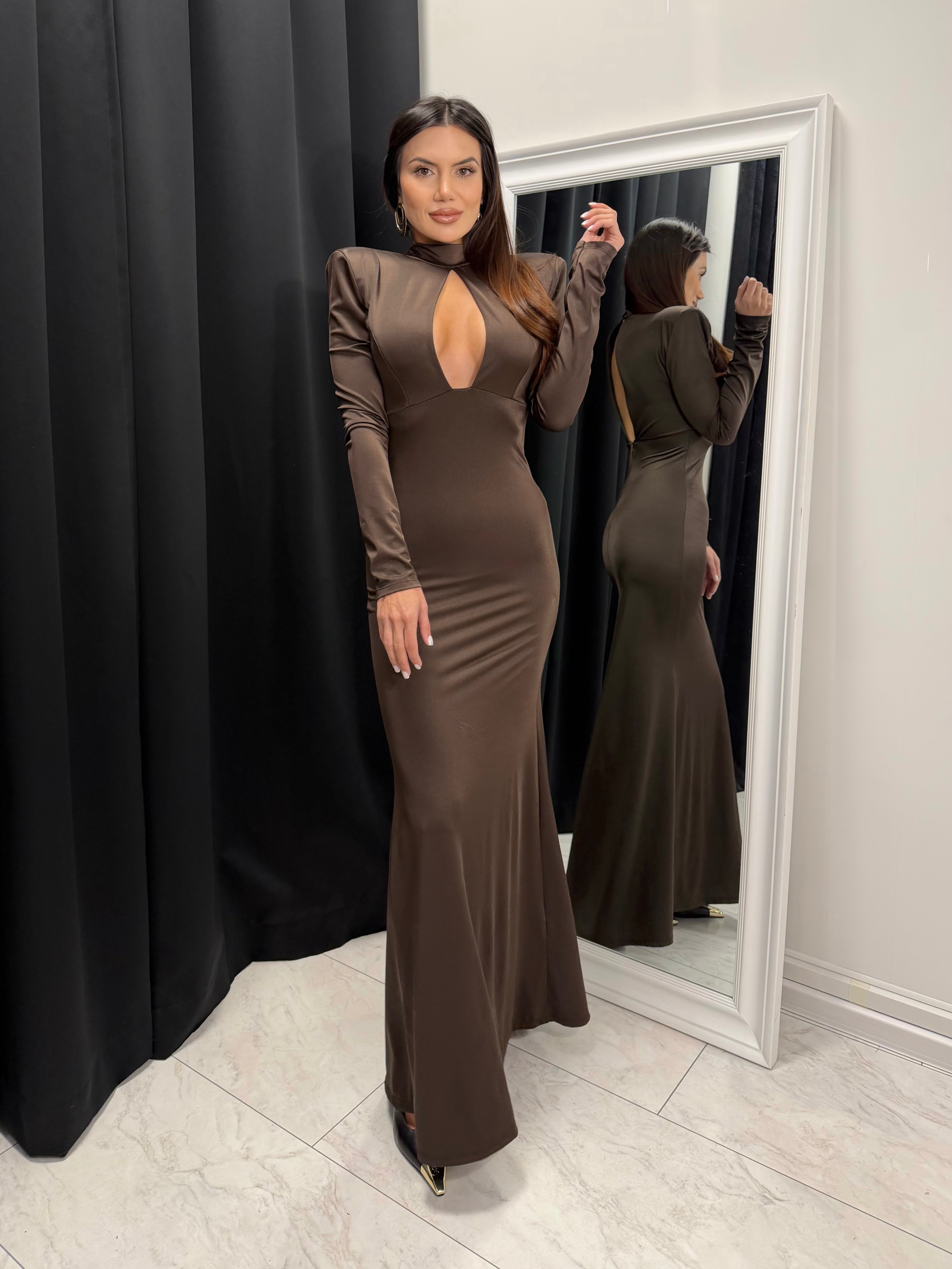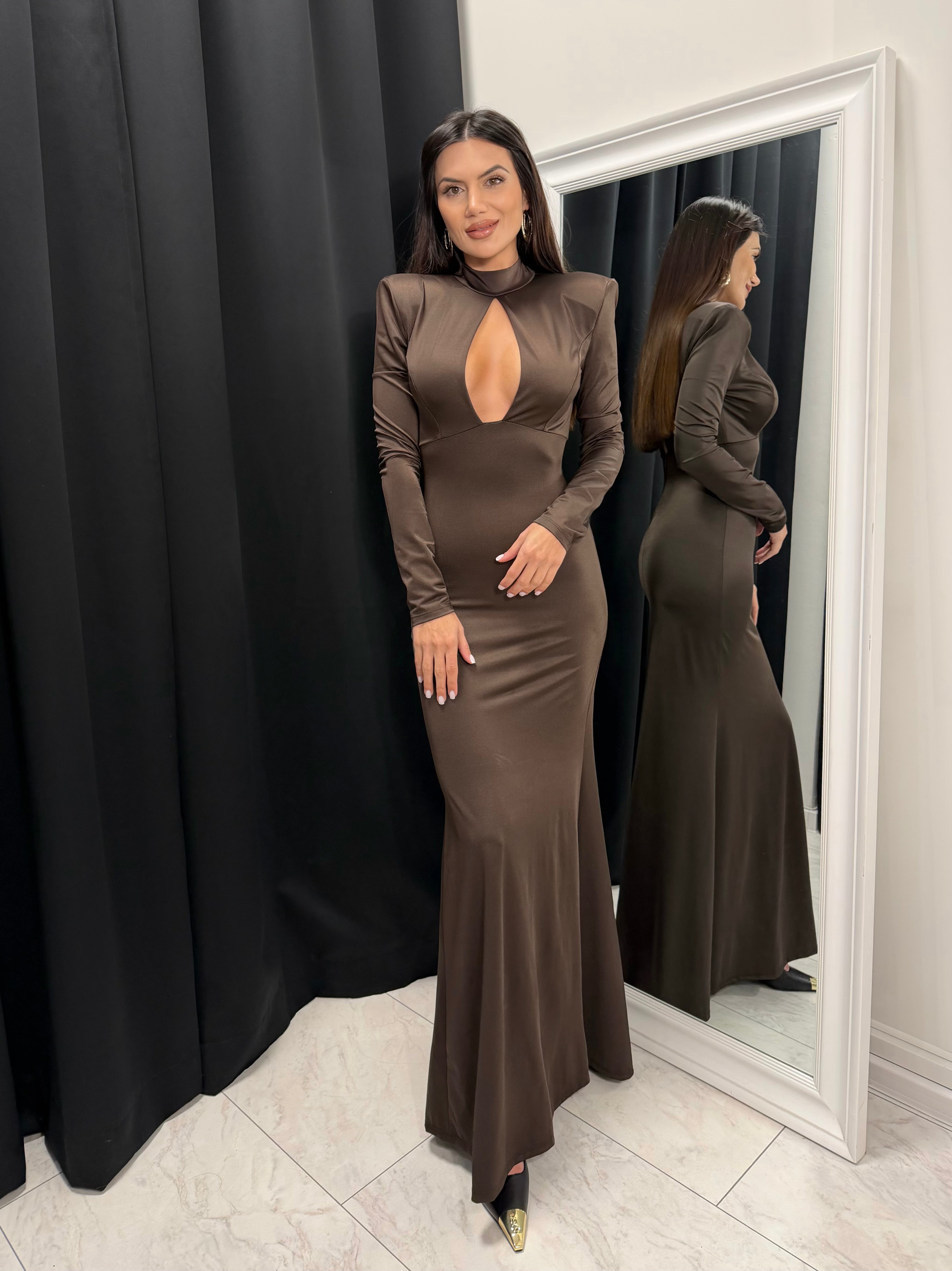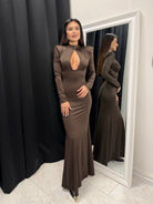 The gold detail at the waist adds a luxurious look and accentuates the silhouette. An ideal choice for special occasions, evening events or stylish daytime outings.
