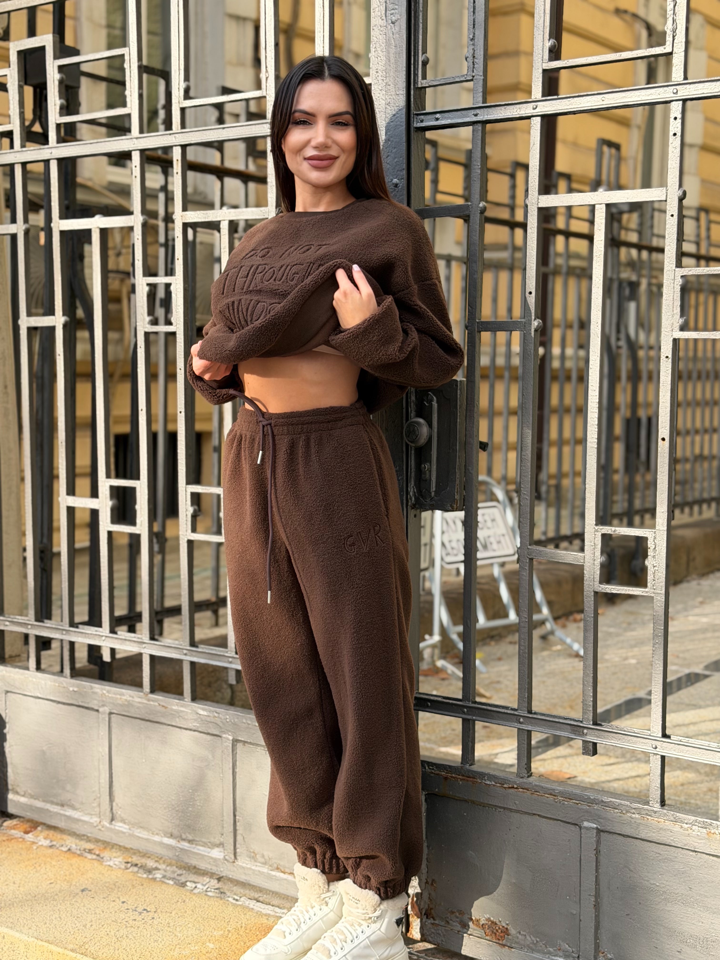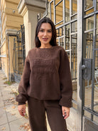 LV TWO-PIECE SET - Loose-fitting blouse with round neckline and high-waisted pants.