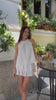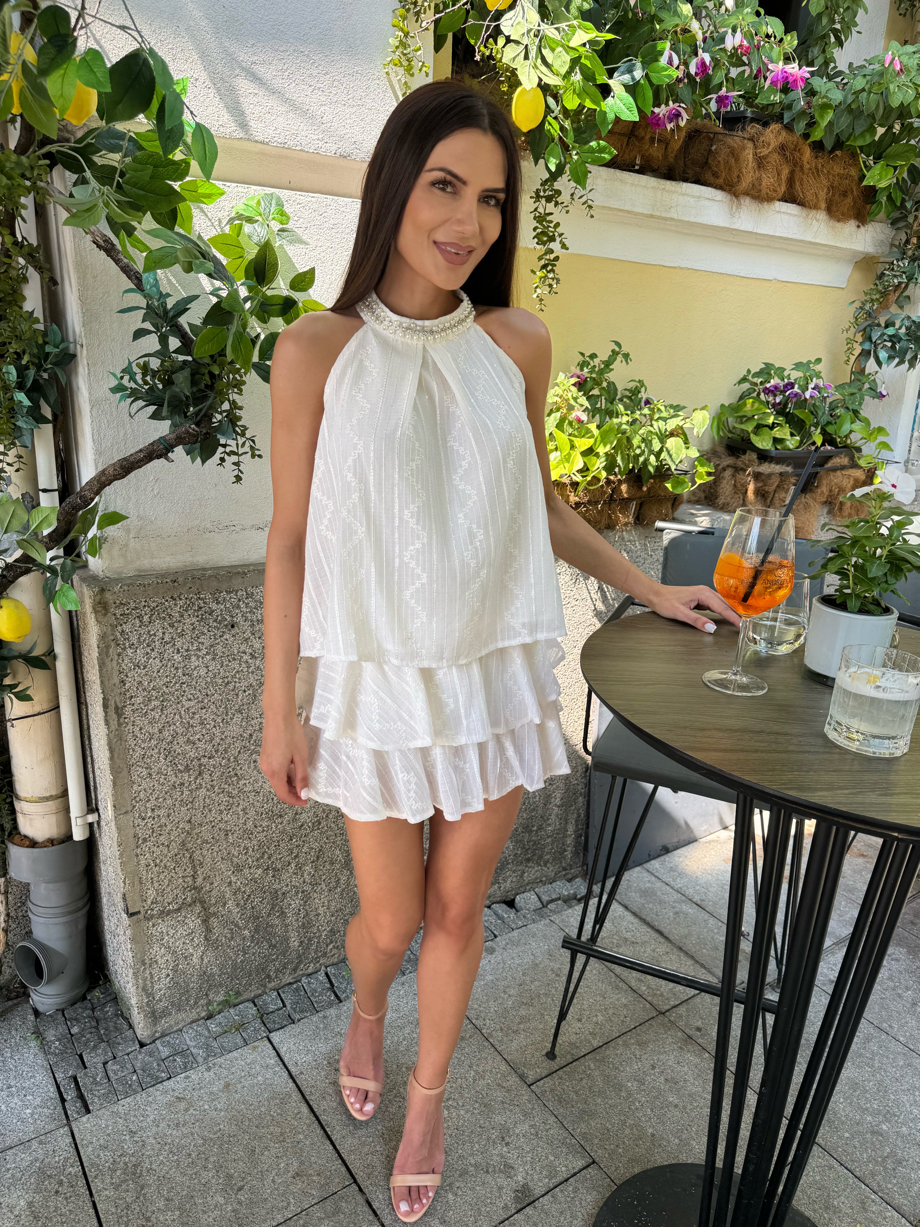 Free model QUEEN SET of two pieces BLOUSE with decorative pearls on the neck and SKIRT with shorts on the inside.