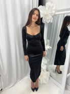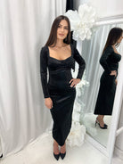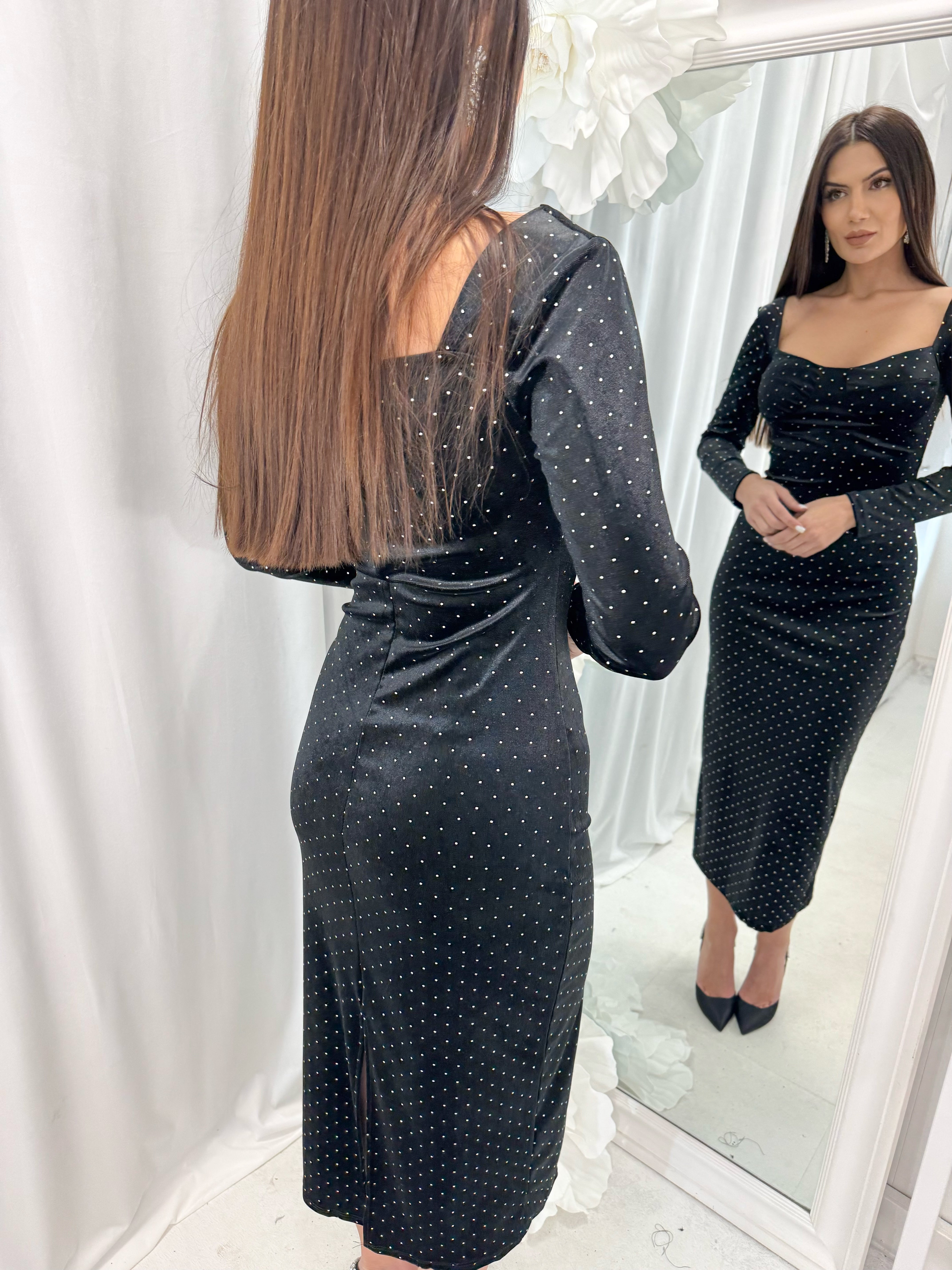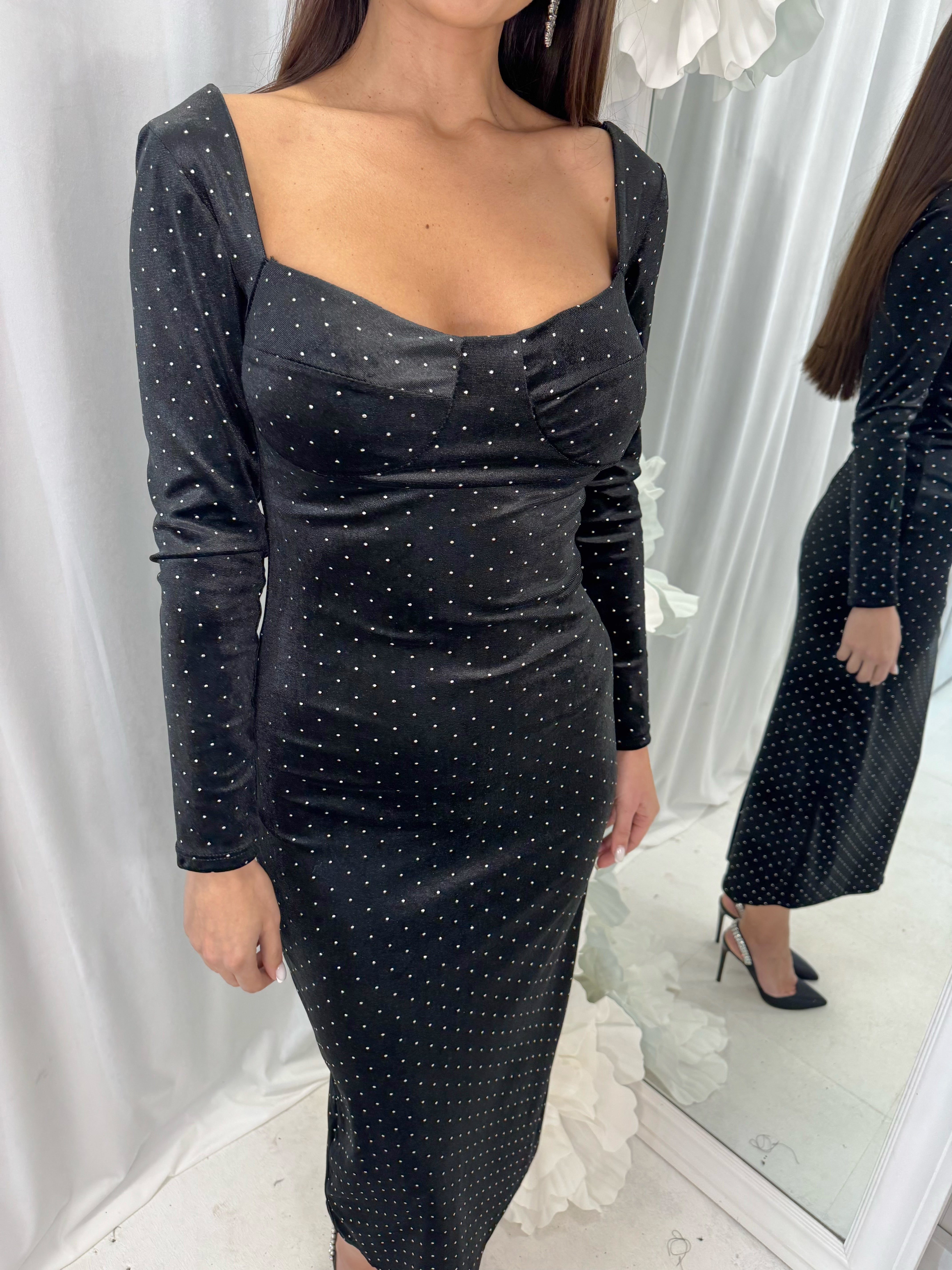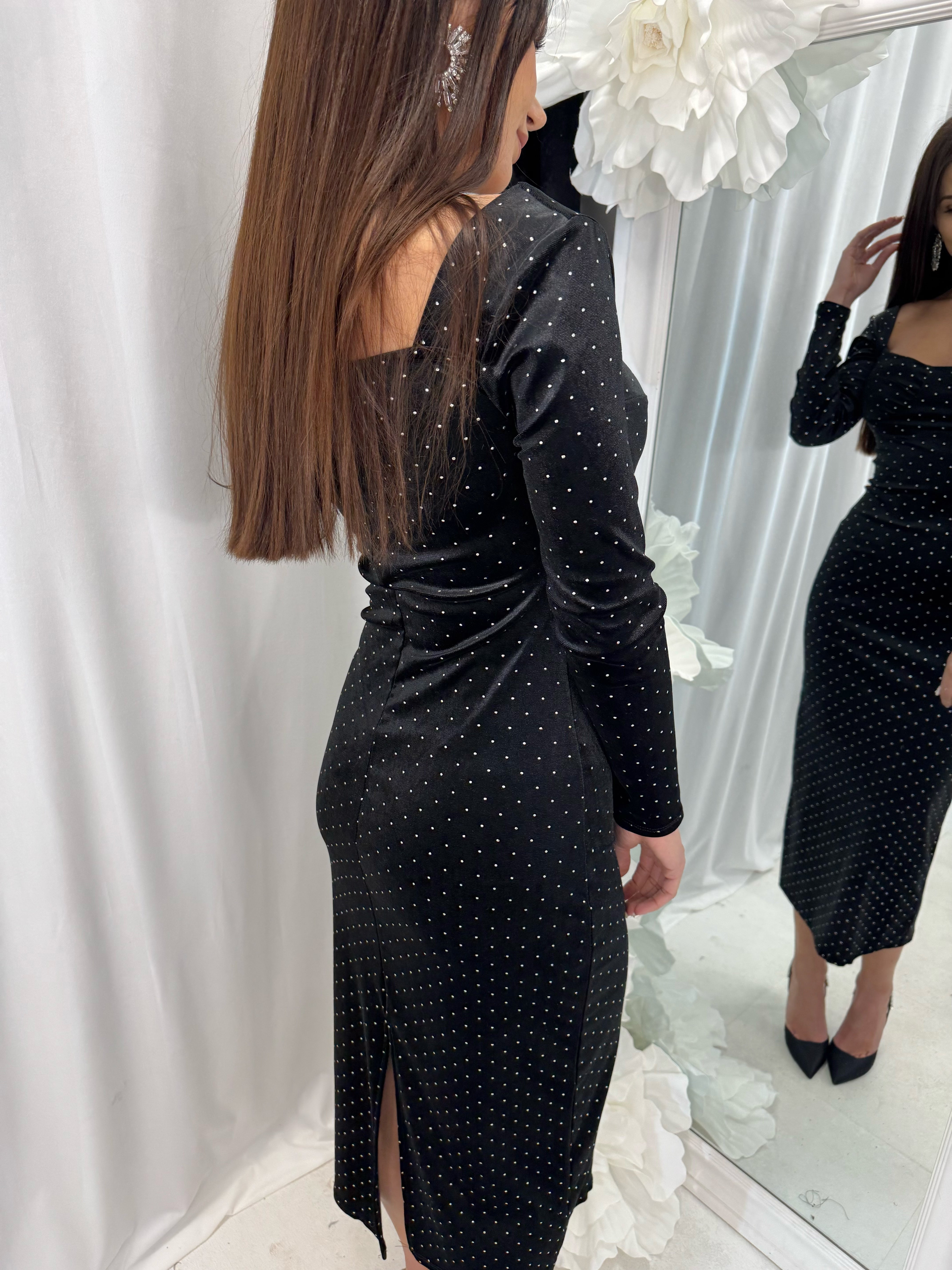 Long DRESS with spectacular sparkling stones on the front and back, below the knee length.