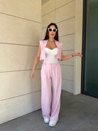 Trousers – waist: 70–80 cm (elastic at the back), hips: up to 104 cm, length: 112 cm