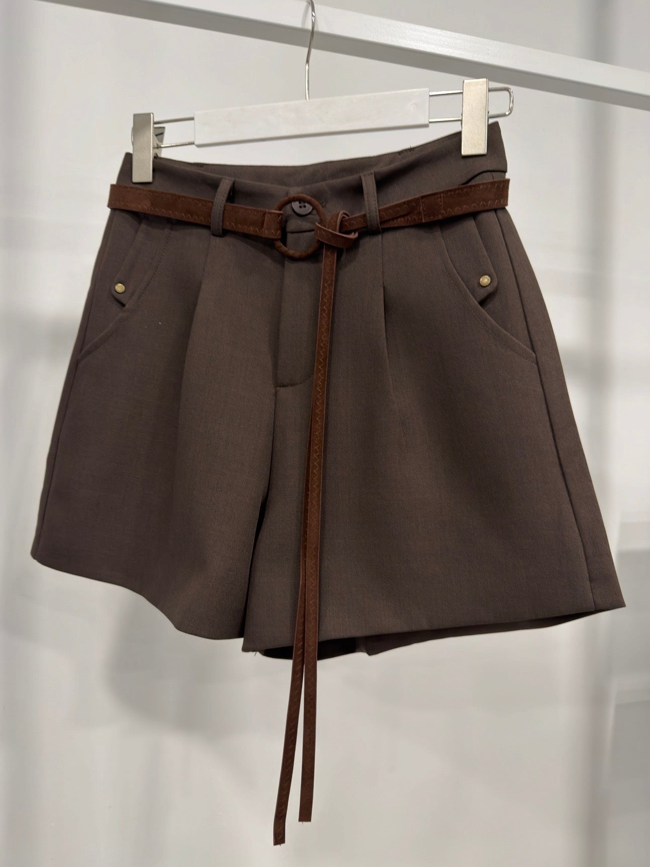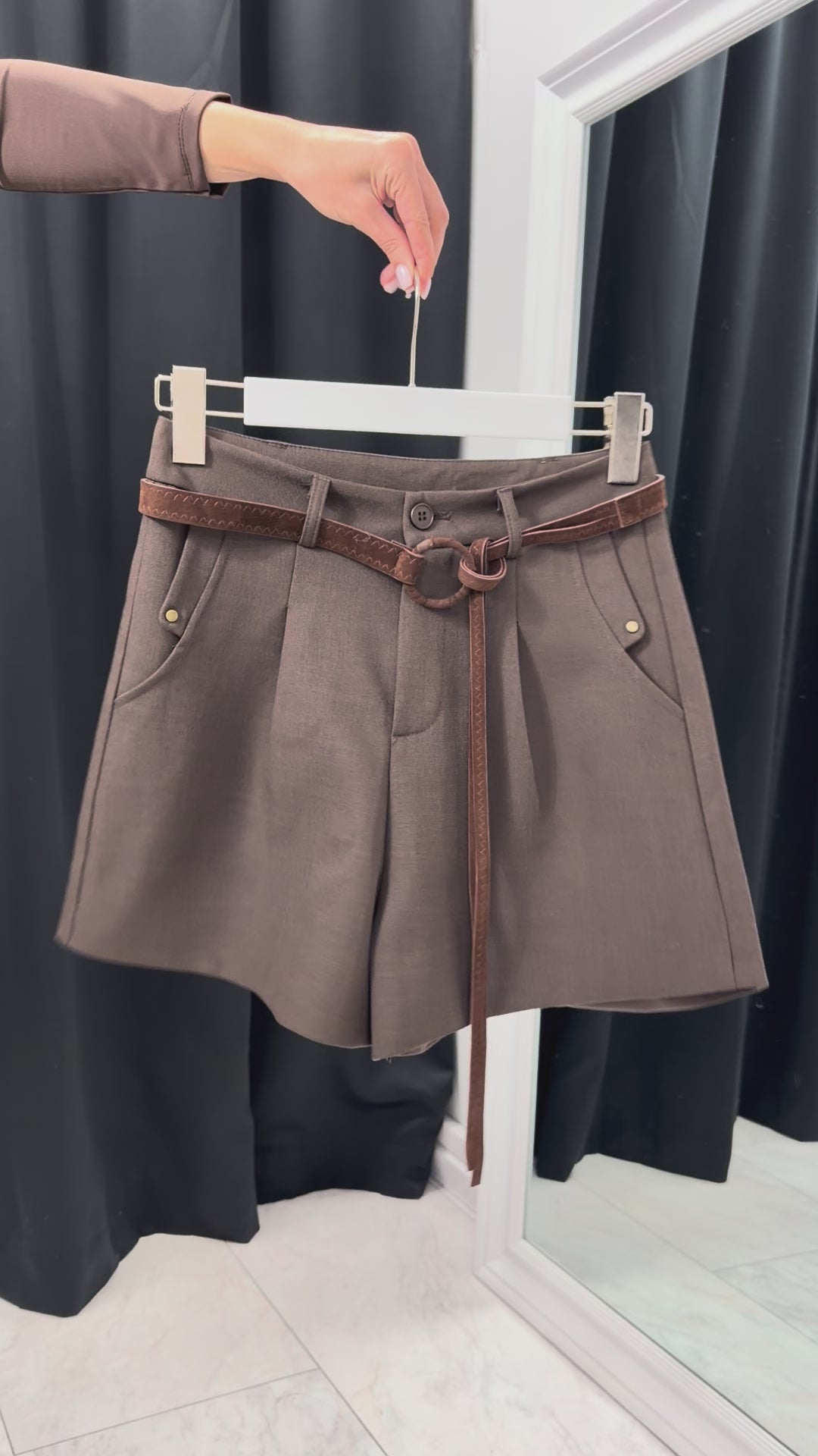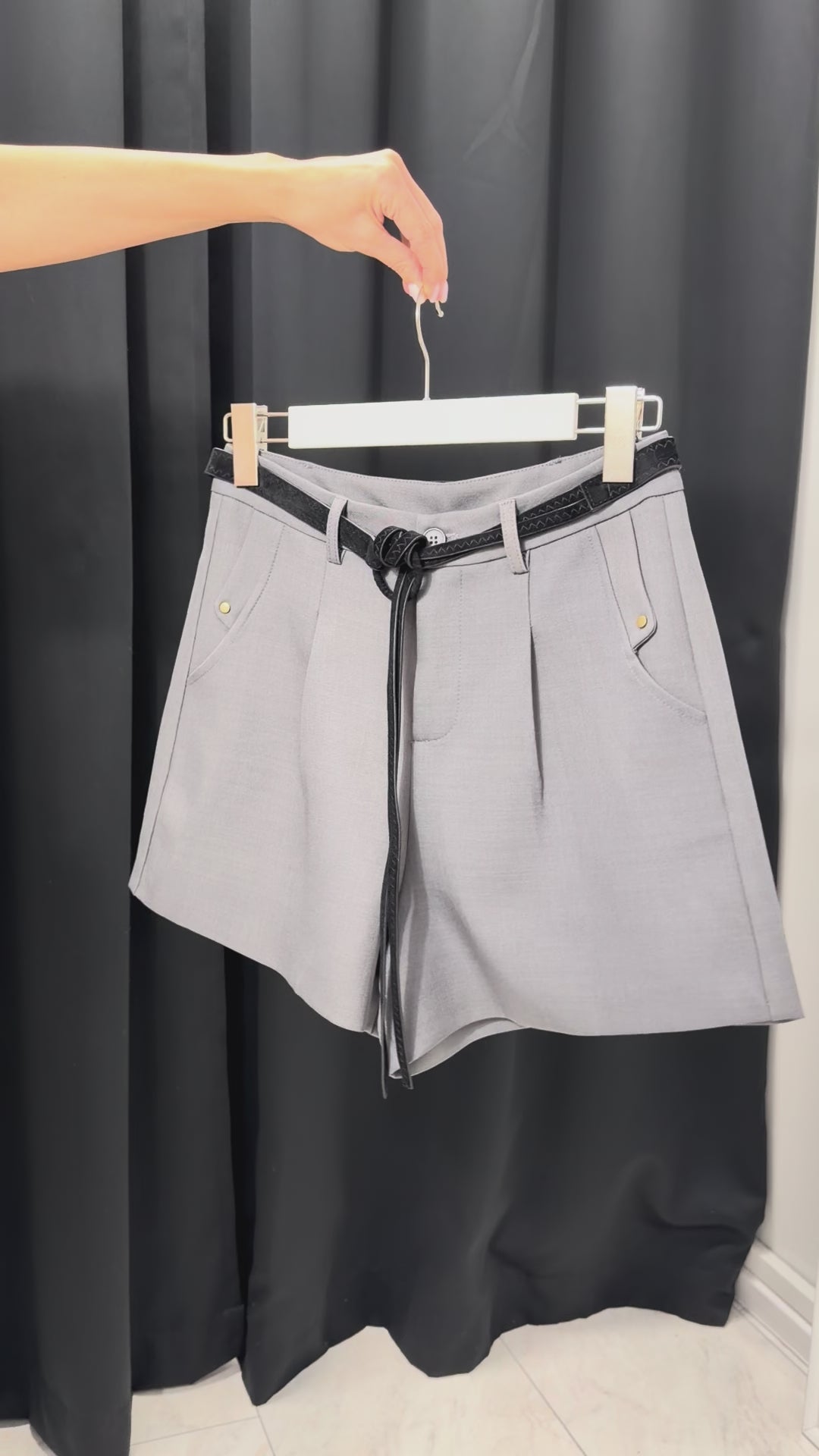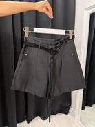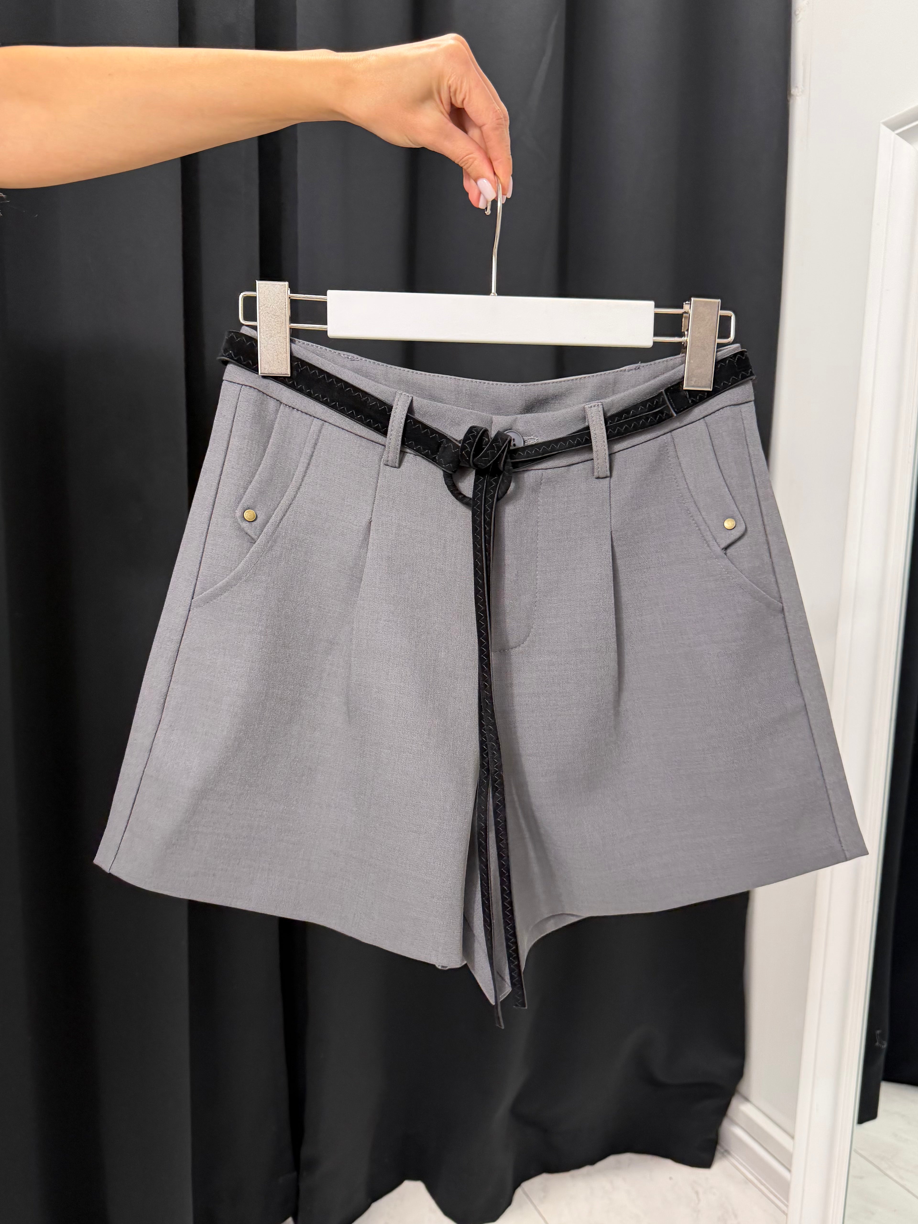 Elegante, moderne și versatile – VELVET BELT SHORTS sunt pantaloni scurți creați pentru a accentua silueta și a adăuga un lux subtil oricărei ținute. Croiala perfectă subliniază talia, iar cureaua de catifea inclusă cu un efect decorativ împletit adaugă un detaliu premium care completează aspectul.